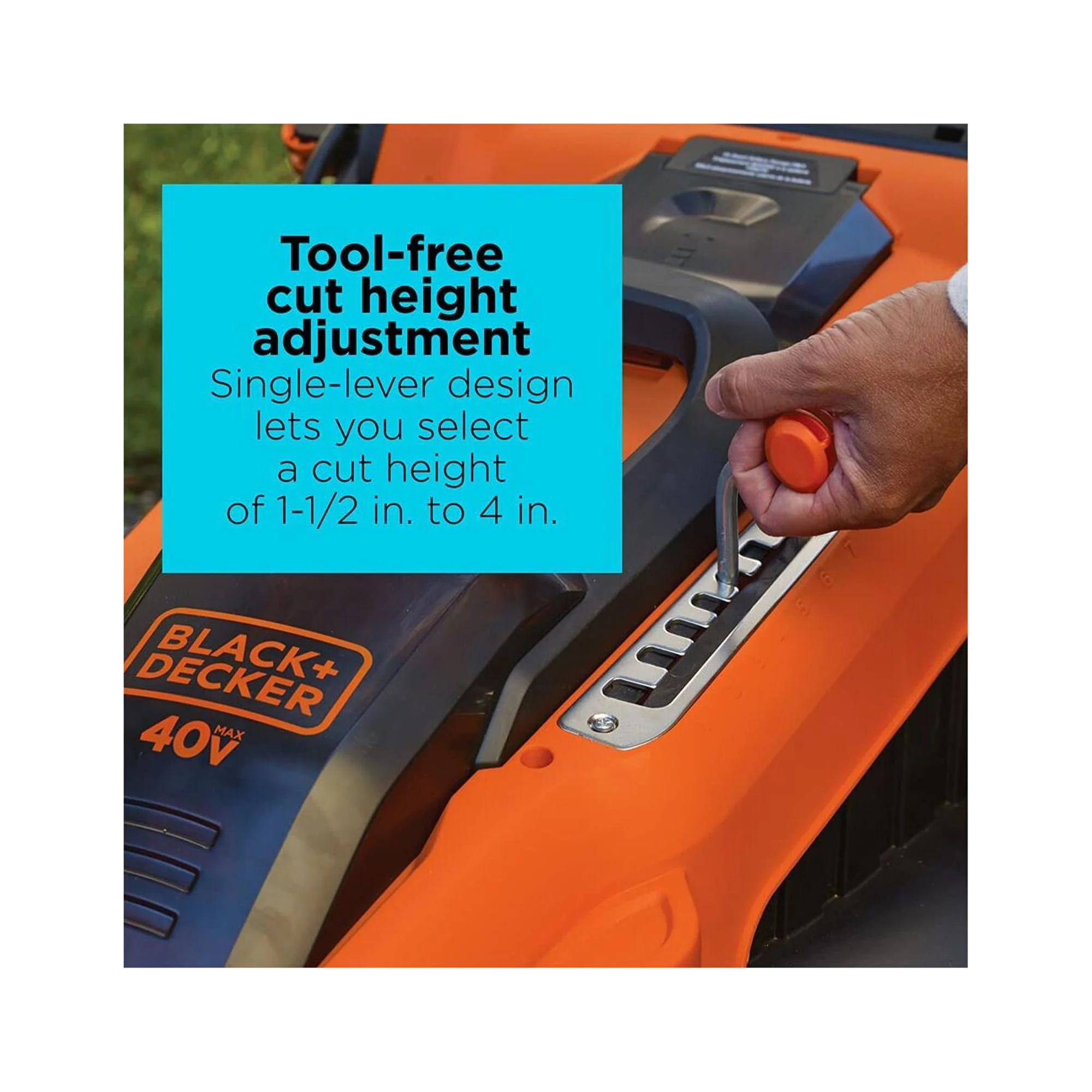- One lever adjusts the cutting height anywhere from 1-1/2 inches to 4 inches, without tools