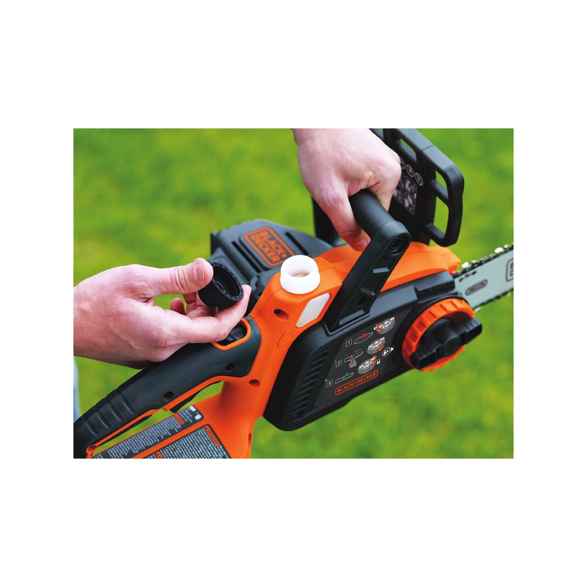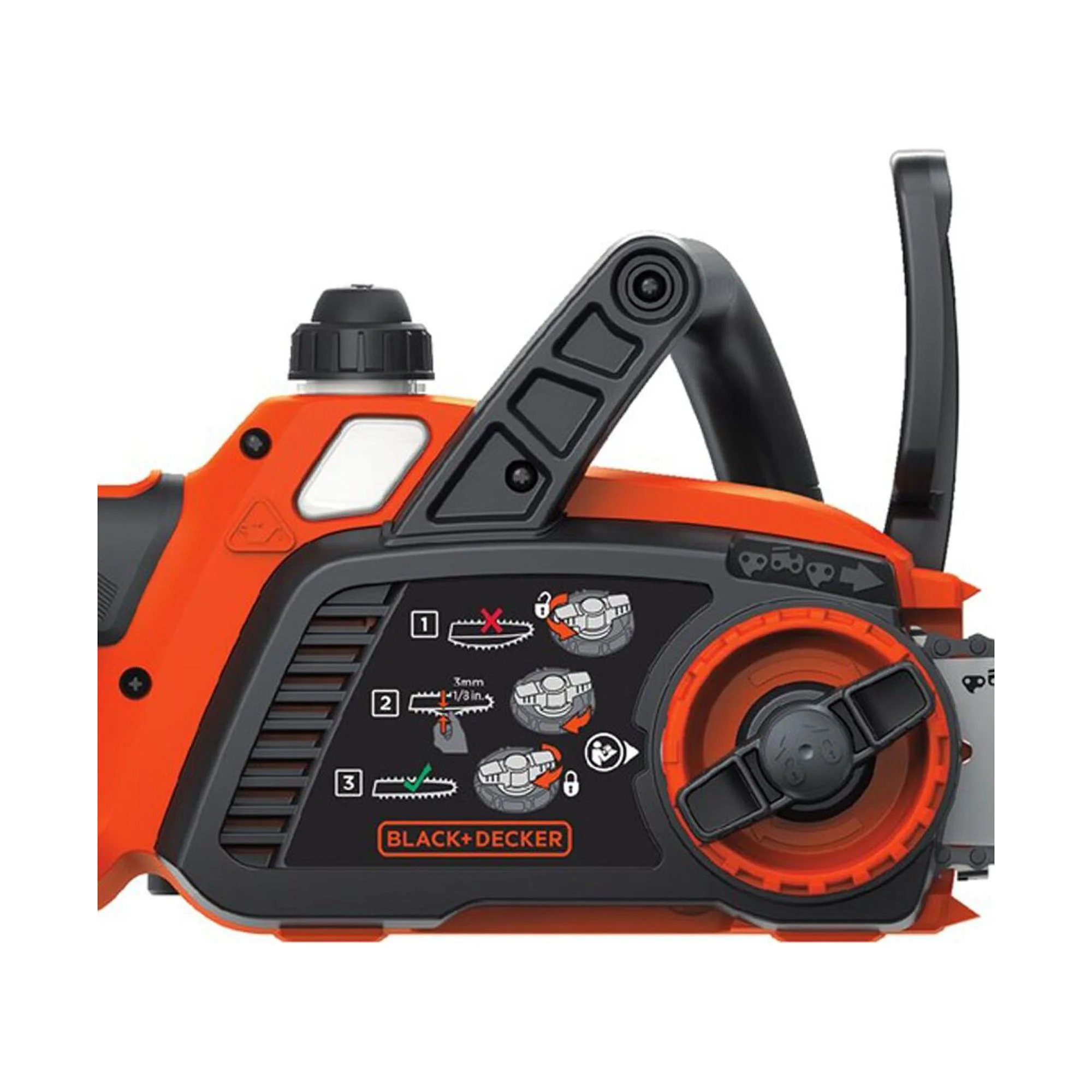 The BLACK+DECKER? 20V MAX* 10-inch cordless chainsaw will help you get more done and features a tool-free chain tensioning system. 20V MAX battery (SKU LBXR20) and charger (SKU BDCAC202B) sold separately.