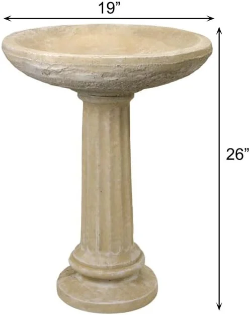 - Design: The Collanade Birdbath features a classic fluted column base and a smooth, wide basin.