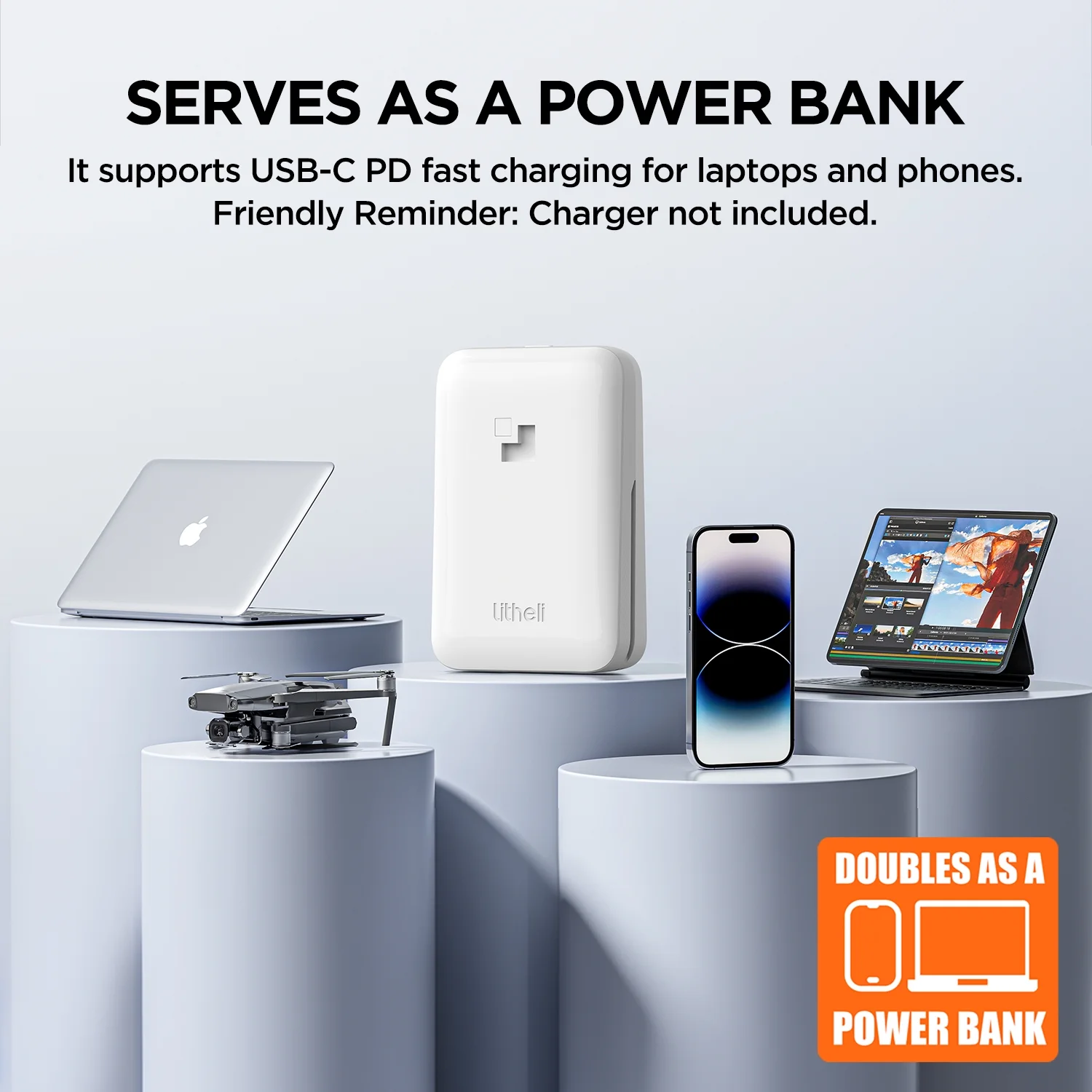 Efficient Battery System: Features an IPS super battery with 45W USB-C PD fast charging, removing the need for traditional charging docks. Compatible with all Litheli U20 series products for energy sharing, it also serves as a power bank for additional device charging.