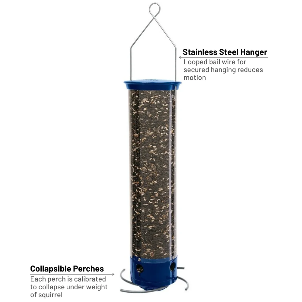 - Length and width of tube are designed to prevent squirrels from reaching the ports