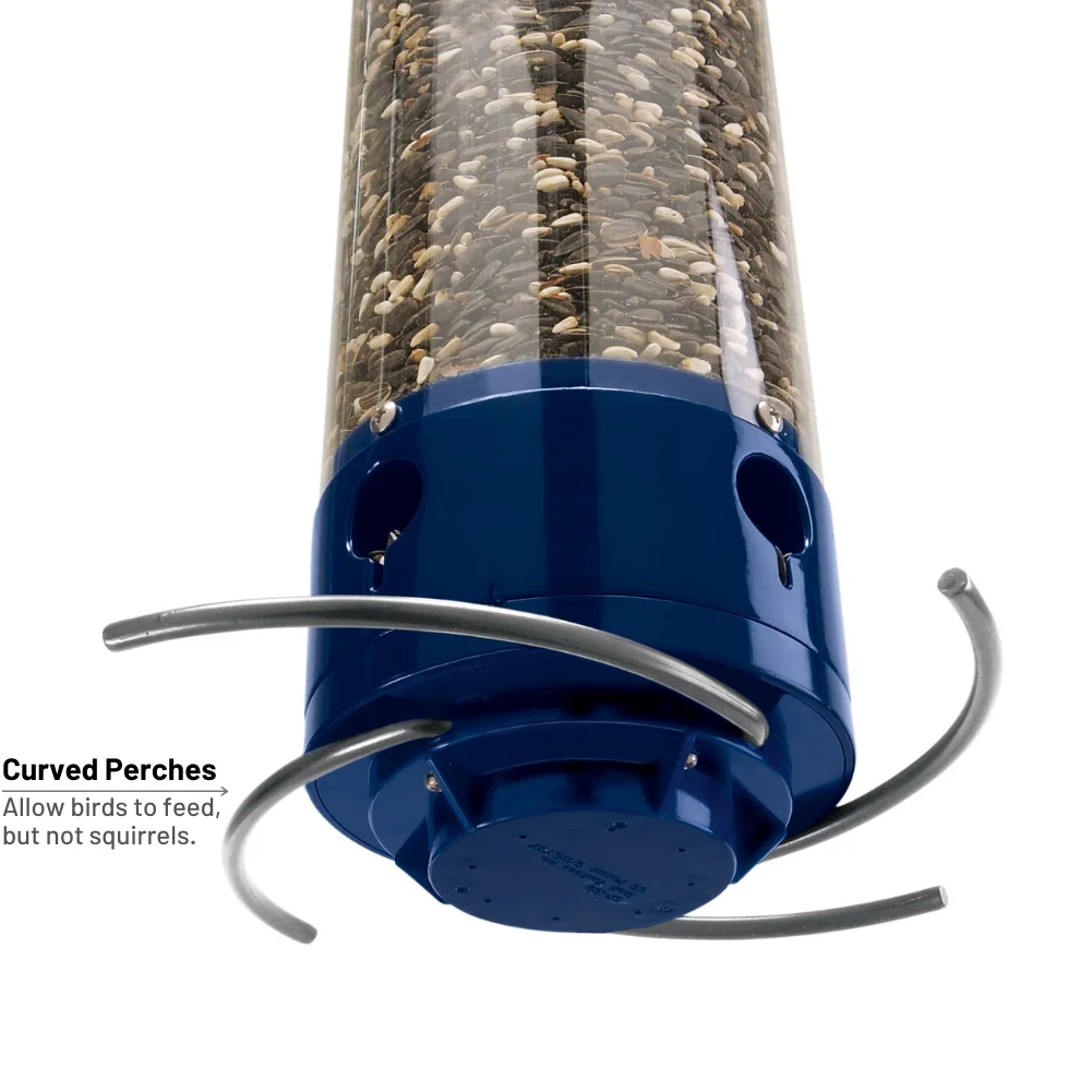 - Four curved perches are designed with cardinals in mind, but prevent squirrels from feeding
