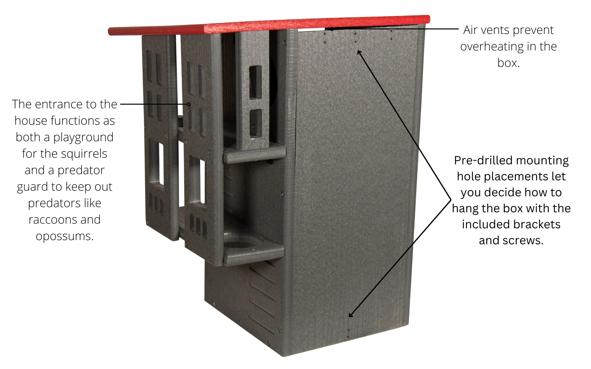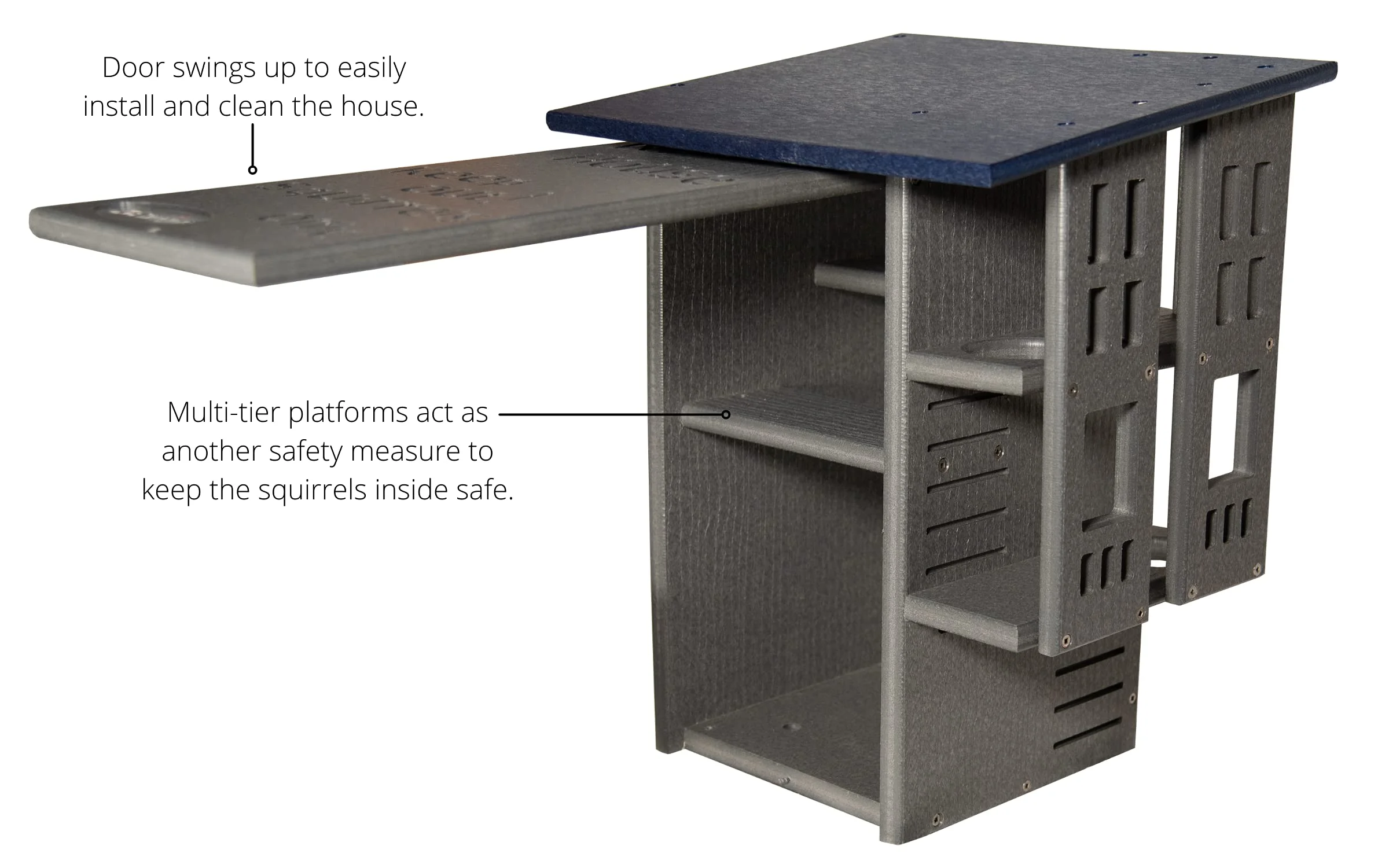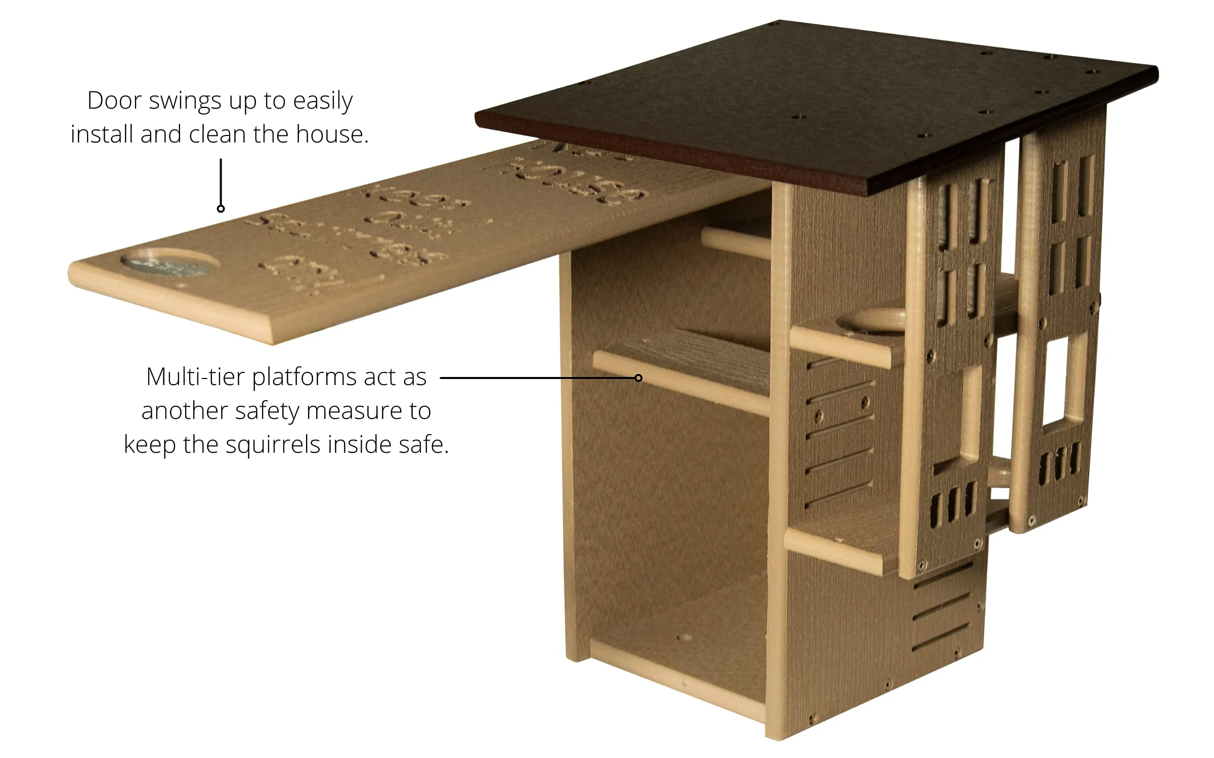 - SPACIOUS MULTI-TIERED DESIGN: Features two interior platforms, offering ample space and added security for nesting squirrels.