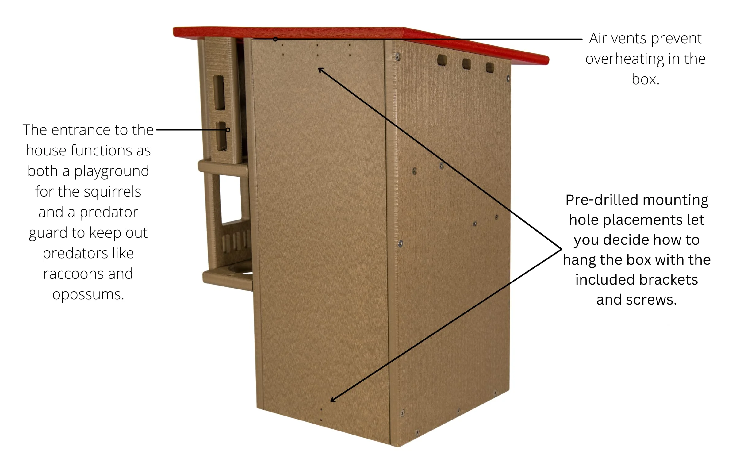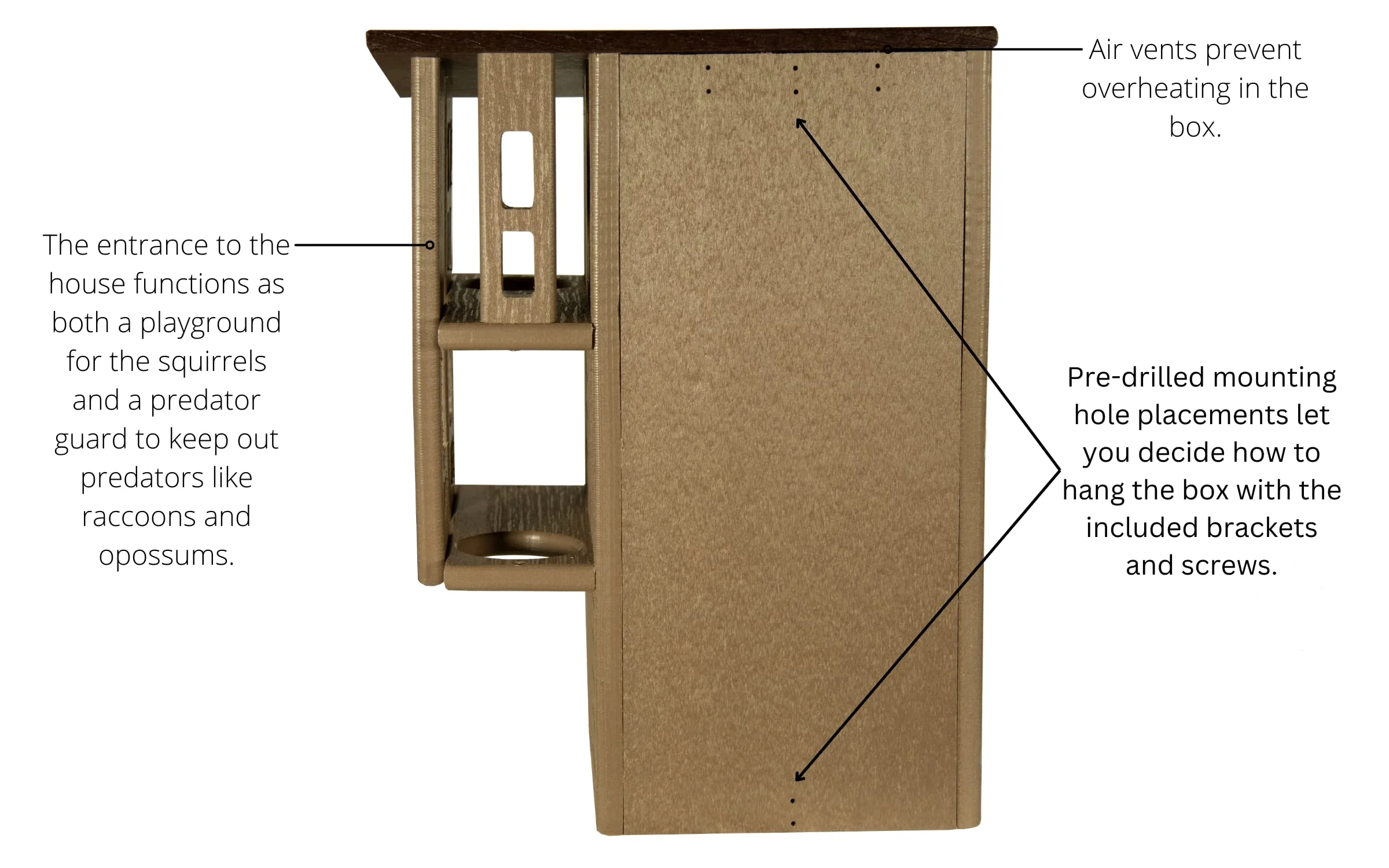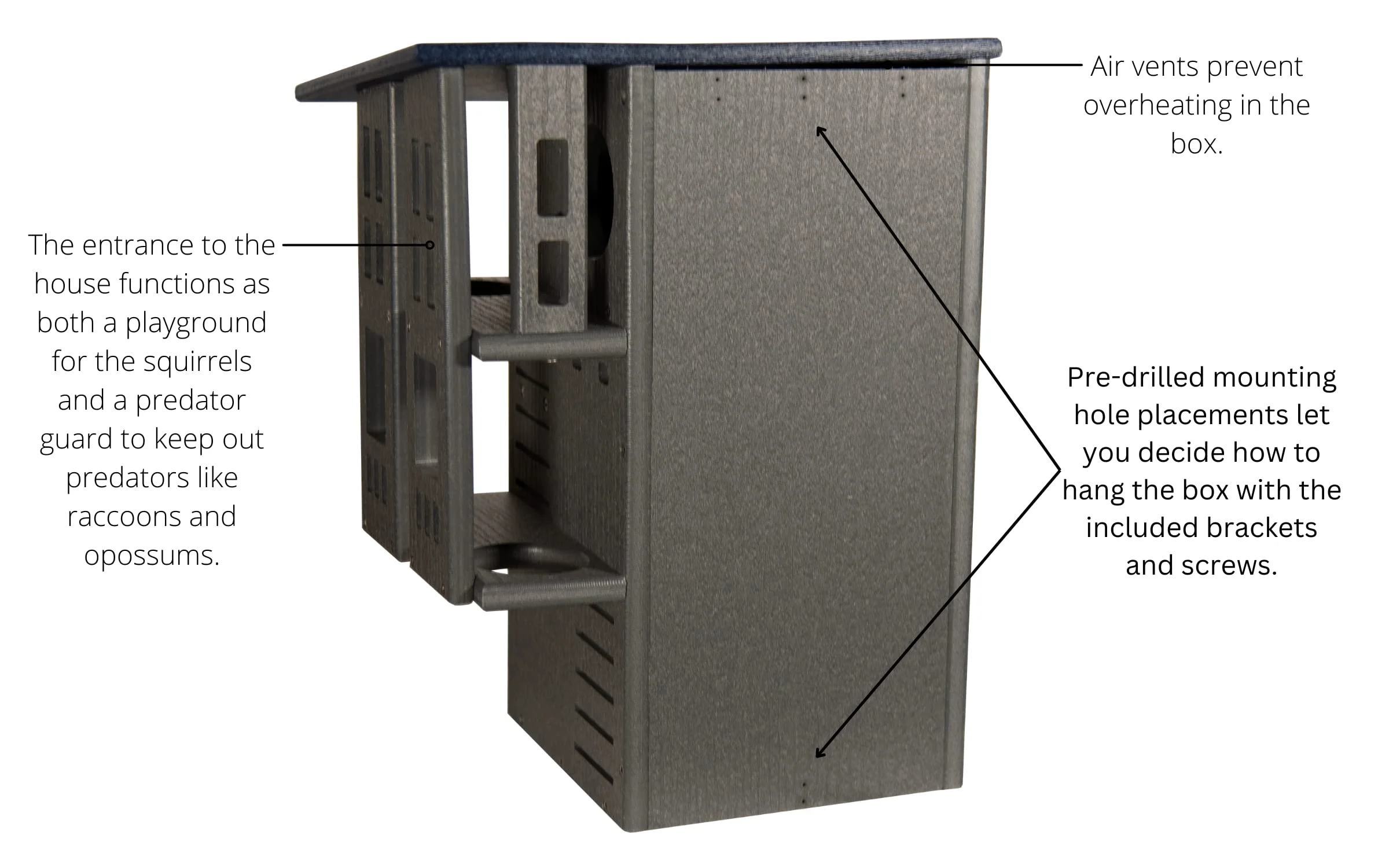 - SPACIOUS MULTI-TIERED DESIGN: Features two interior platforms, offering ample space and added security for nesting squirrels.