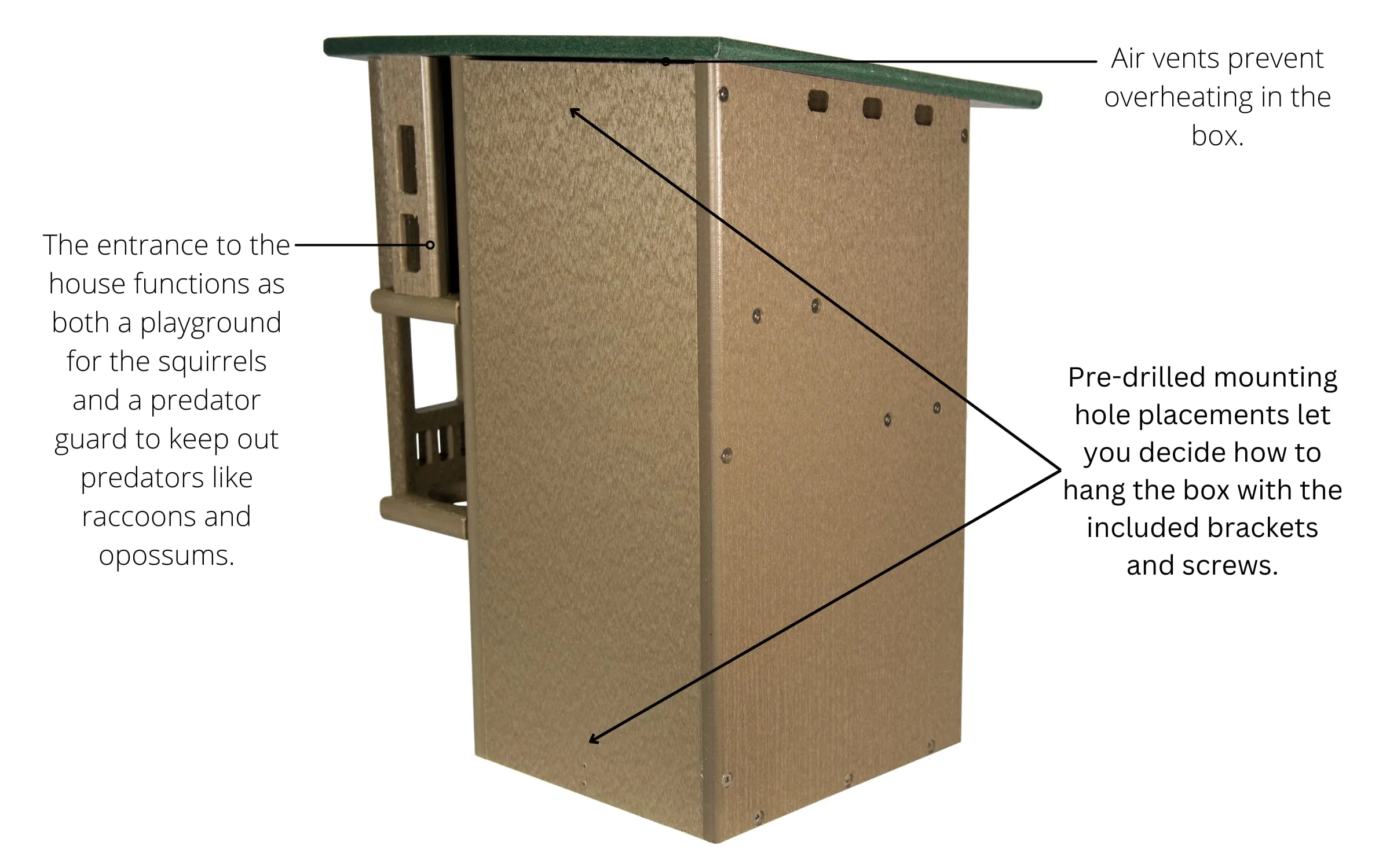 - BUILT-IN PREDATOR GUARDS: Equipped with predator guards and dual entrance/exit holes for enhanced protection against raccoons and opossums.