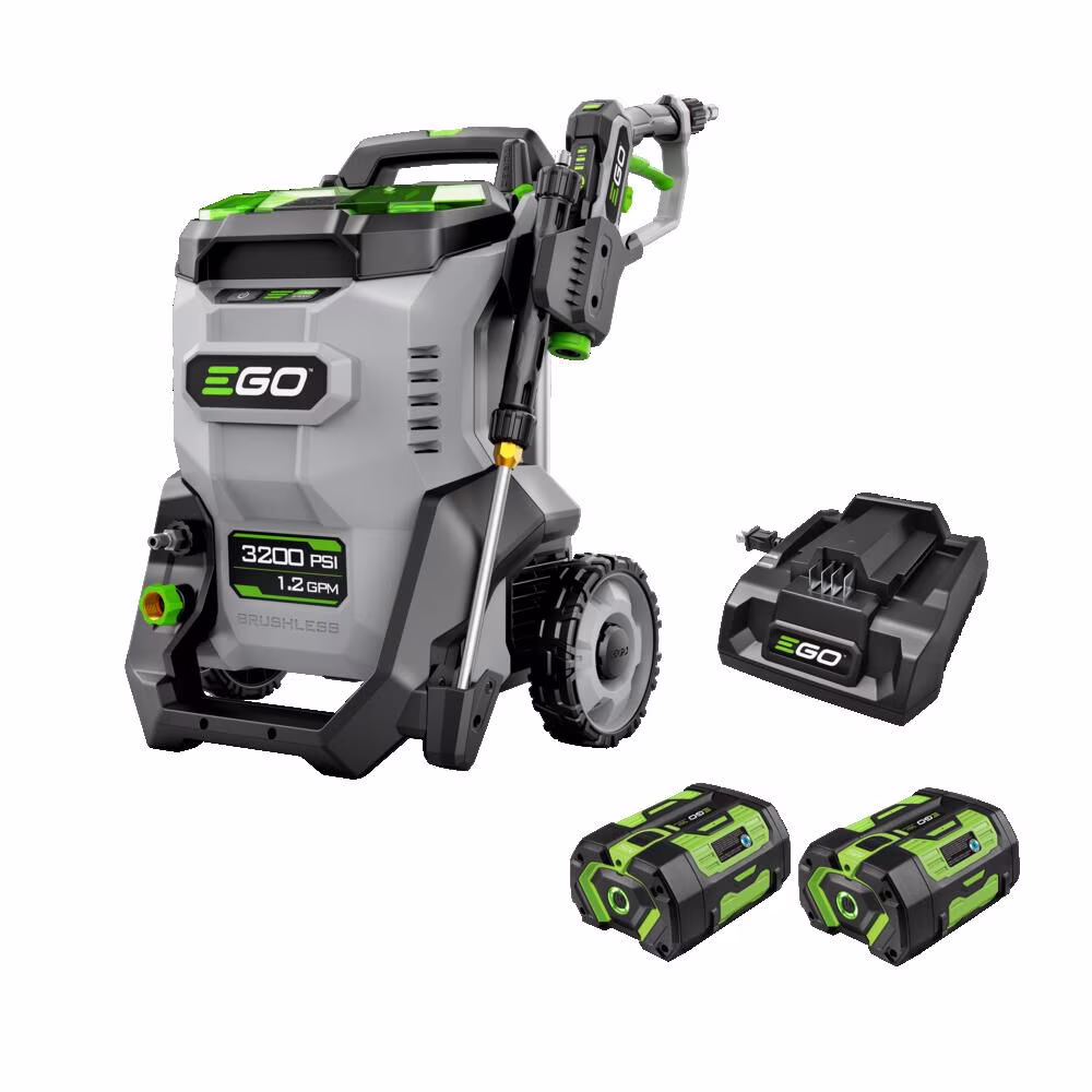 - Cordless cold water pressure washer delivering 3200 PSI of pressure at 1.2 GPM