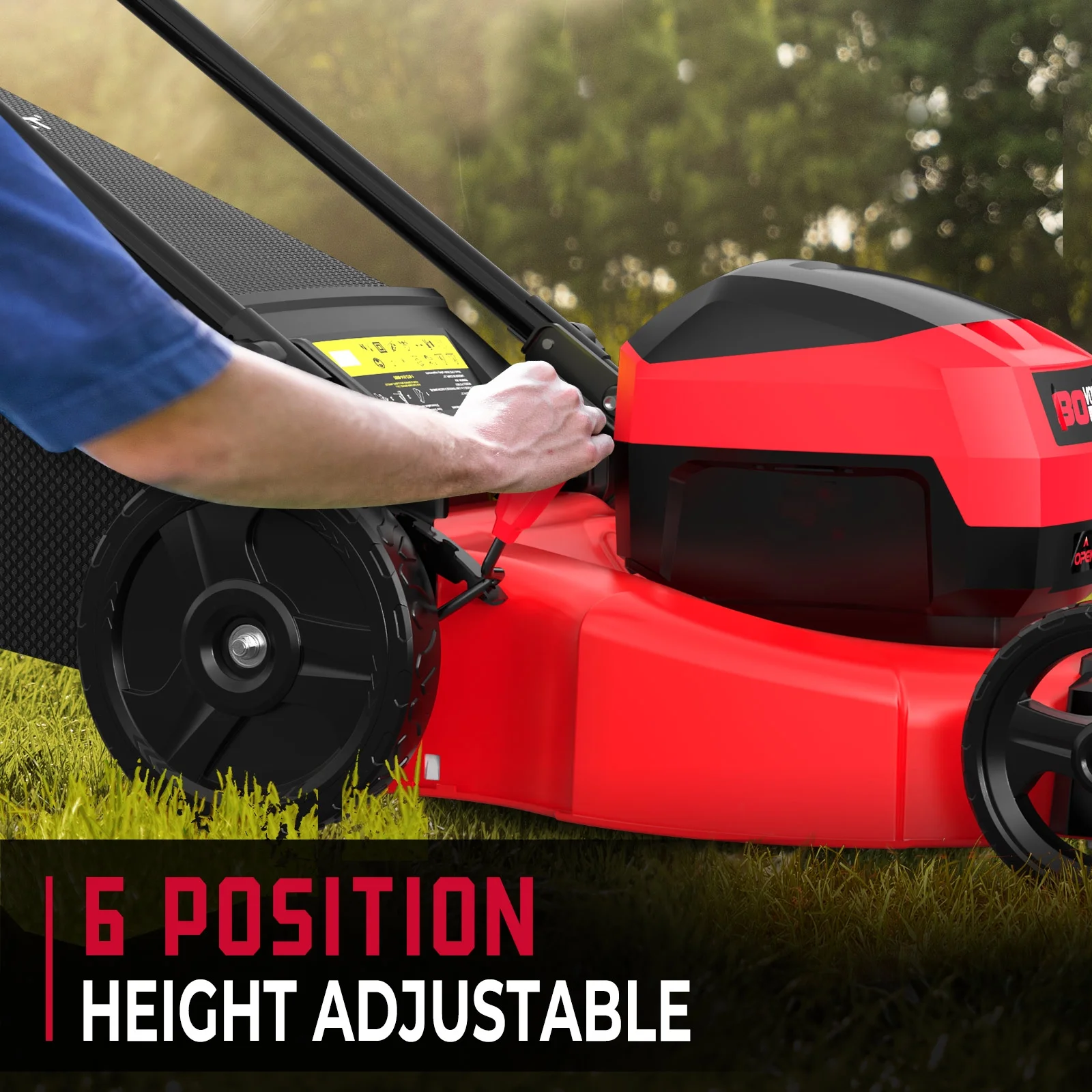 - 6-Position Height Adjustment: Adjusts from 1.5" to 3.9" for different mowing heights, ensuring a precise cut for various grass types and conditions.