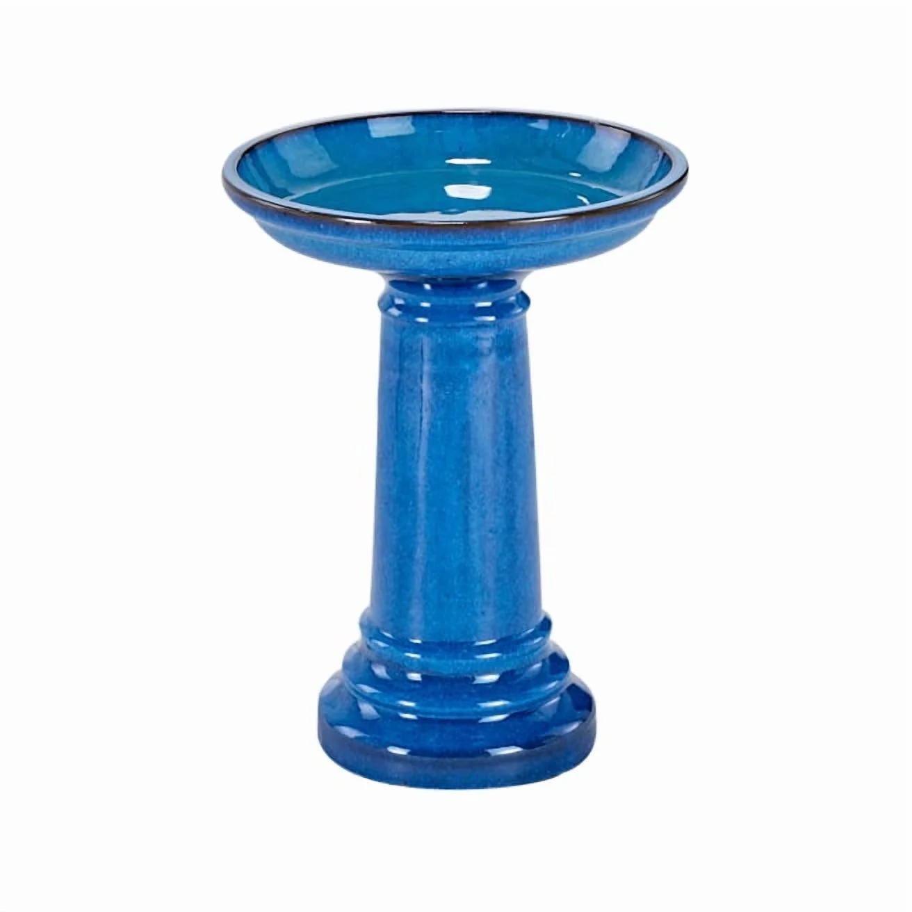 - Low-maintenance design features bold, vibrant color finished in a glossy, blue glaze