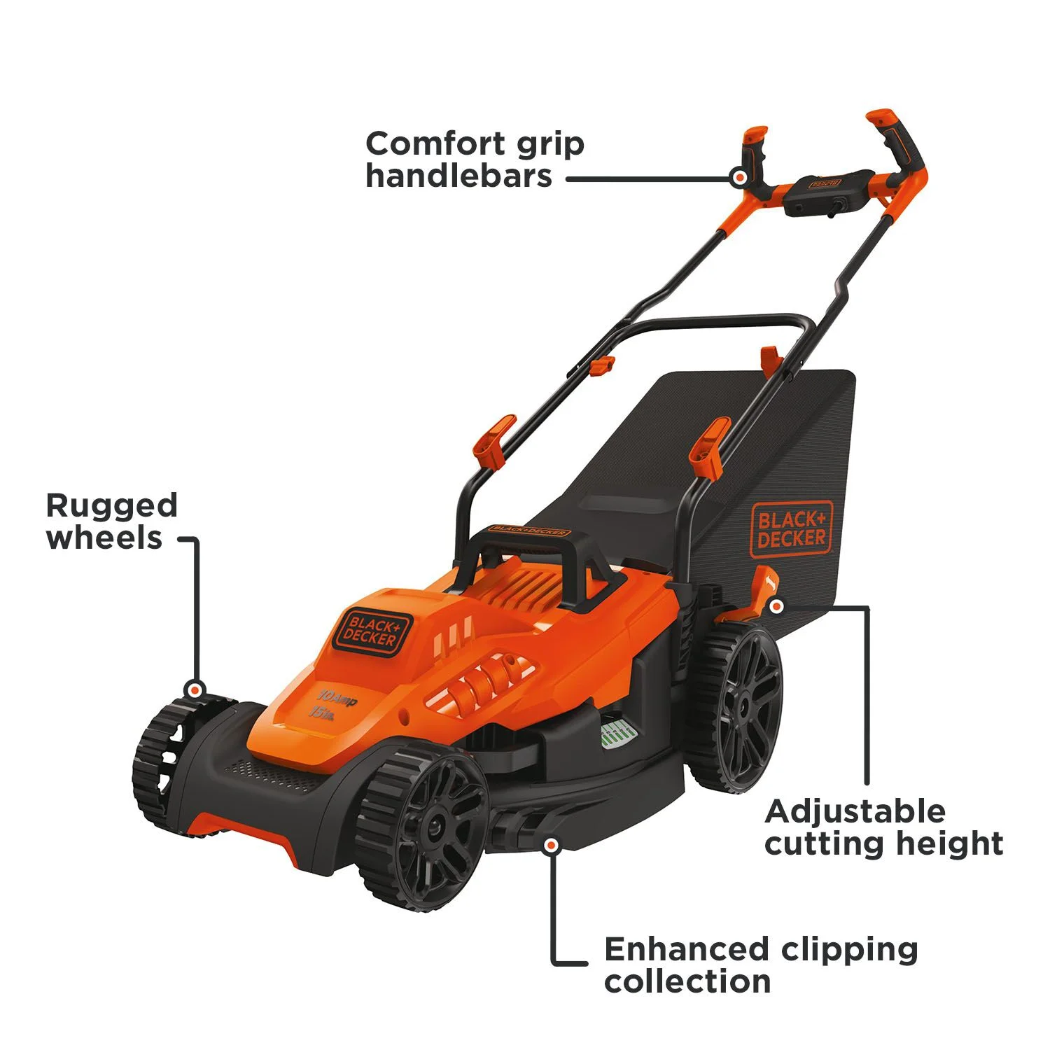 BLACK+DECKER 15�� Corded Electric Push Walk-Behind Mower, Comfort Grip Handle