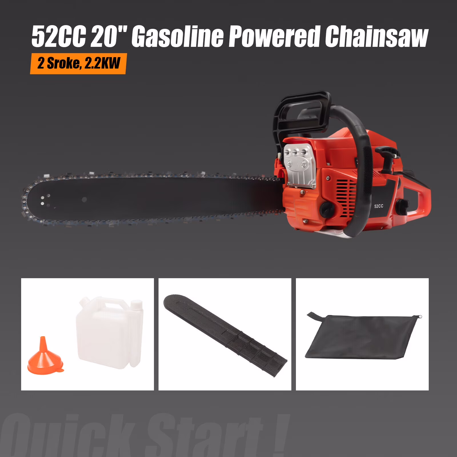 • 52CC 20" Gasoline Chainsaw Powered Wood Cutting Gas Crankcase Chain Saw Engine