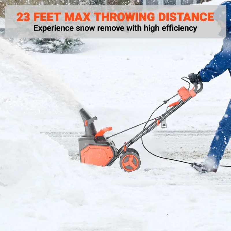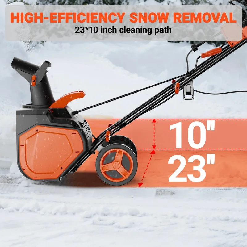 Driven by a 15A heavy-duty motor, this corded snow shovel shreds 23-inch paths through 10-inch snowbanks, hurling debris 23 feet away��ideal for large properties and commercial use. No battery limits, no runtime anxiety: plug in and dominate.