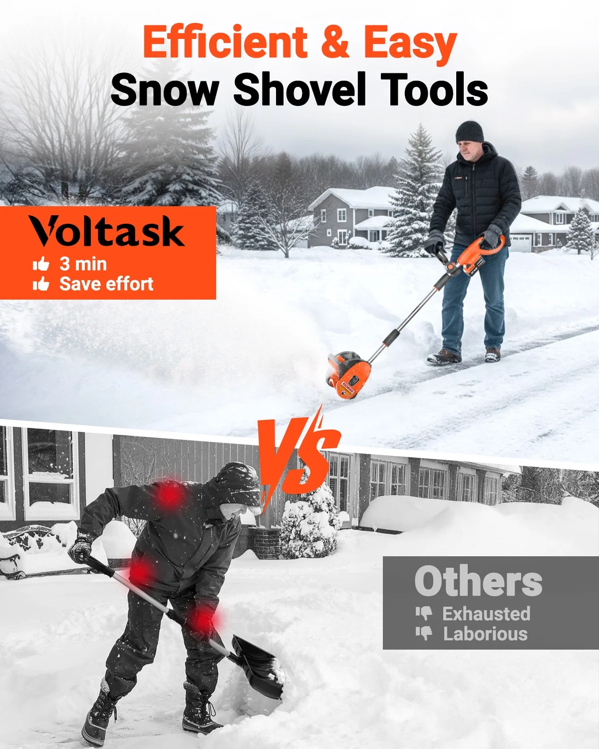 Backed by a 3-year warranty, the VOLTASK snow blower is a reliable and durable choice for your winter snow removal needs.