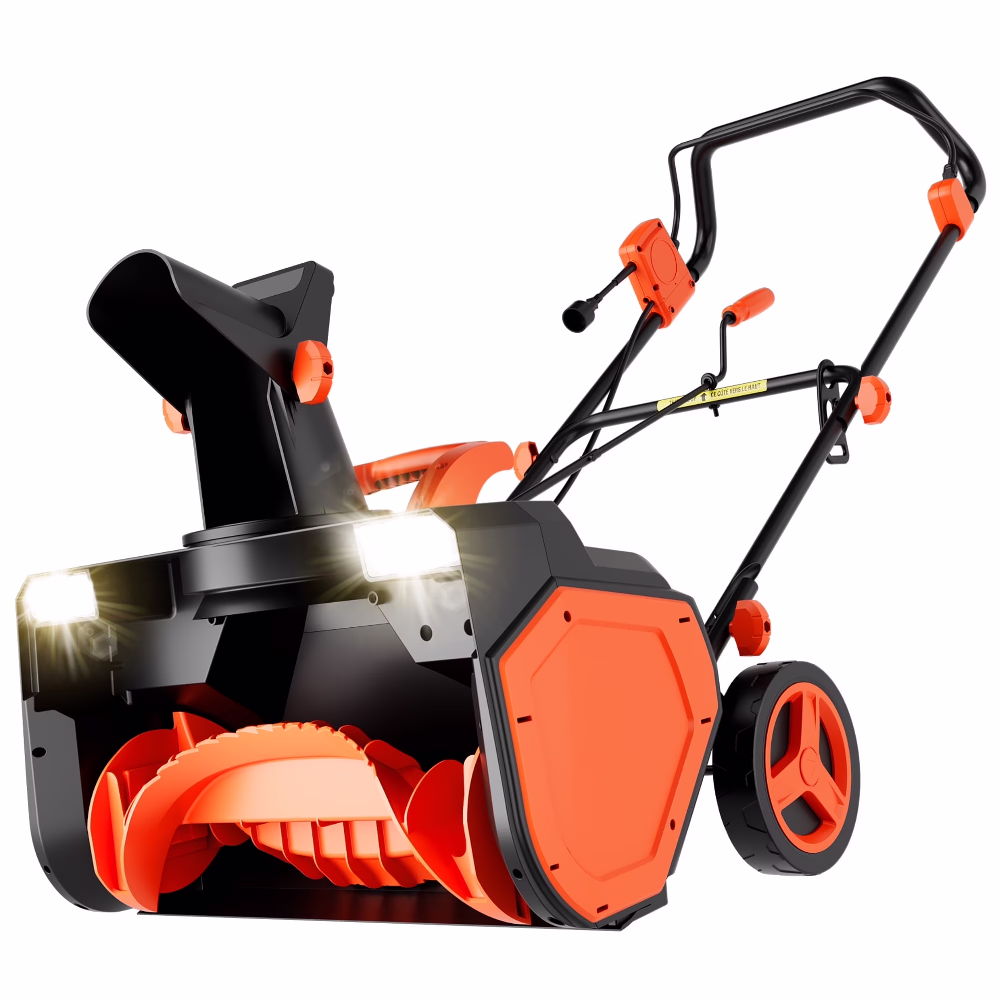 Pivoting handles + low-profile frame (26.9 lbs) reduce back strain, while self-propelled wheels handle pushing. The one-hand adjustable chute directs snow 45�� left/right. LED lights conquer night operations.
