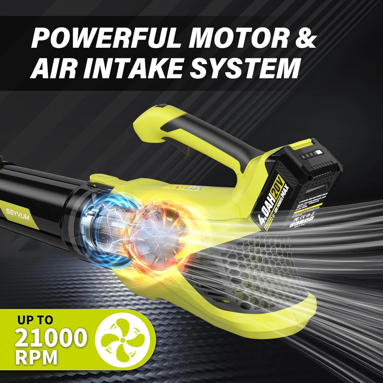 - High-Performance Leaf Blower: This cordless leaf blower features a high-quality pure copper motor for longer lifespan and lower energy consumption. Its axial flow fan technology delivers faster rotation speed, more powerful air volume, and superior heat dissipation compared to traditional centrifugal fans.