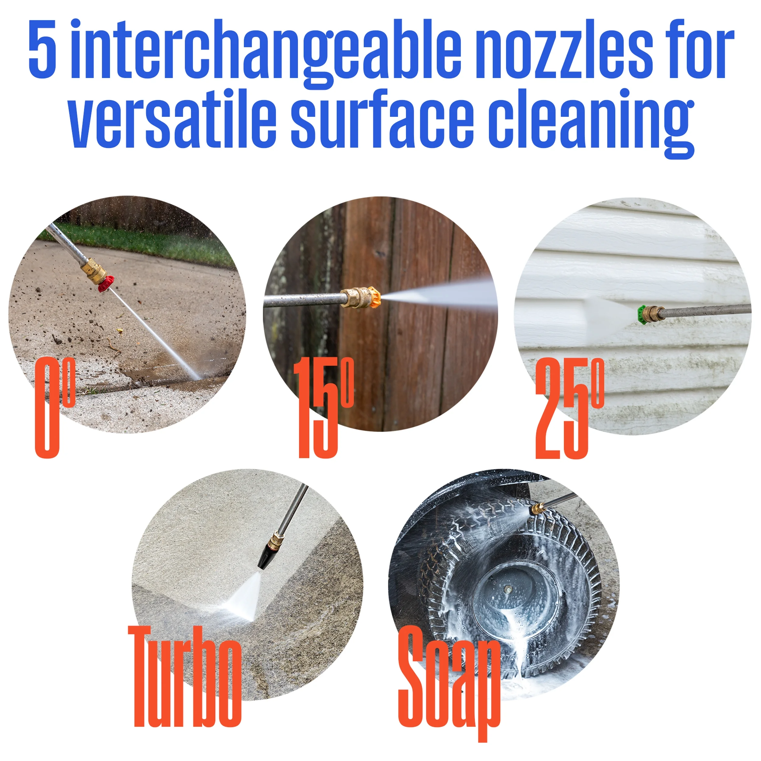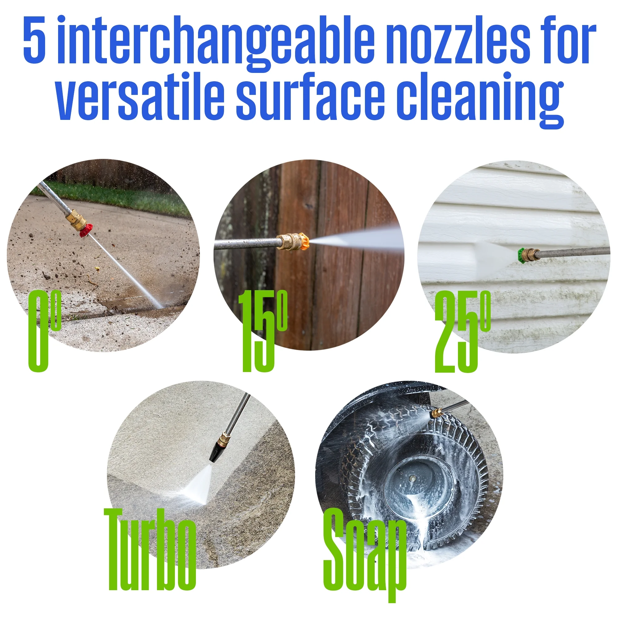 - Five Quick Connect nozzle tips (0��, 15��, 25��, turbo, and soap applicator)