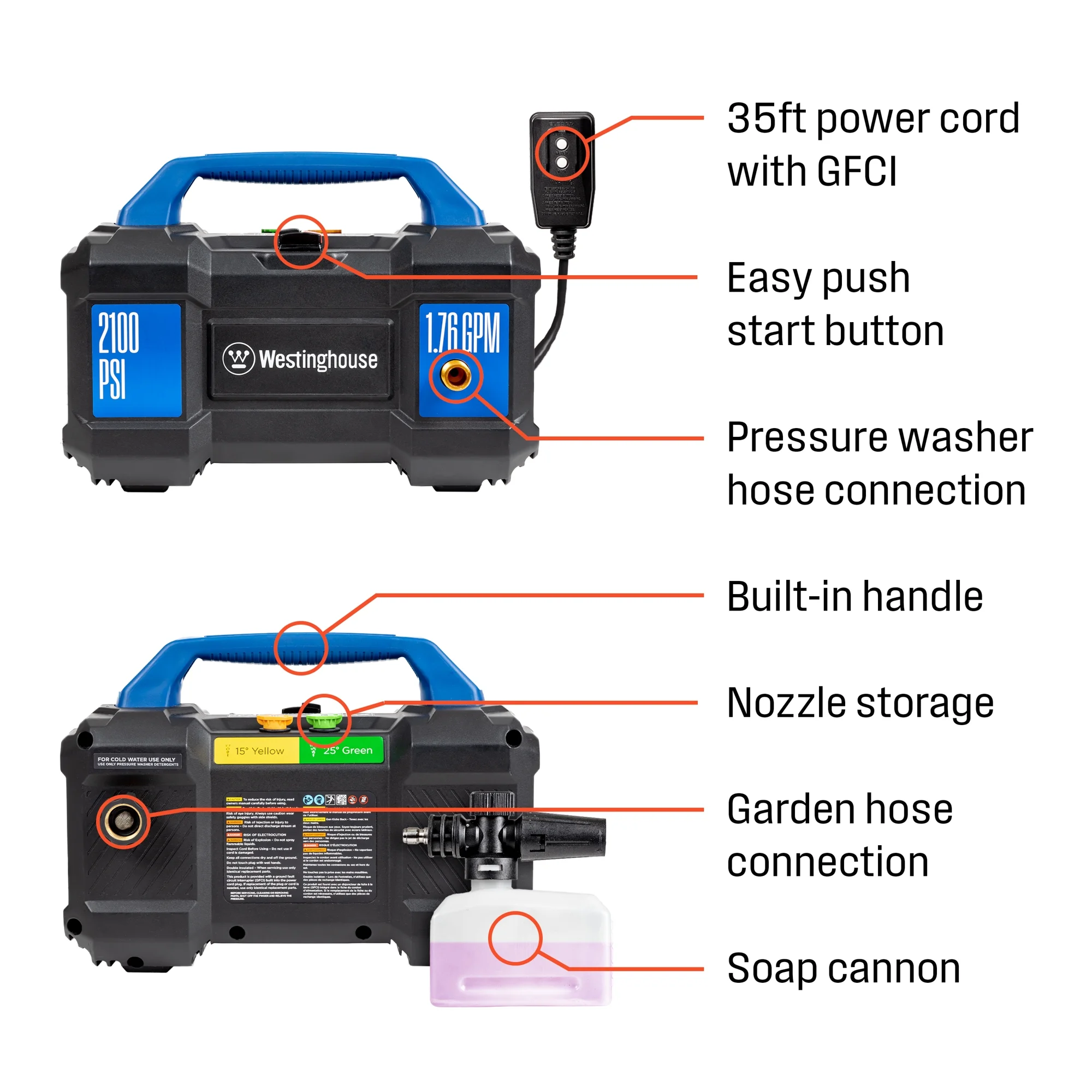 - 2500 max PSI* (at initial discharge per CSA internal pressure testing) and up to 1.76 max GPM* (without nozzle at minimum pressure)