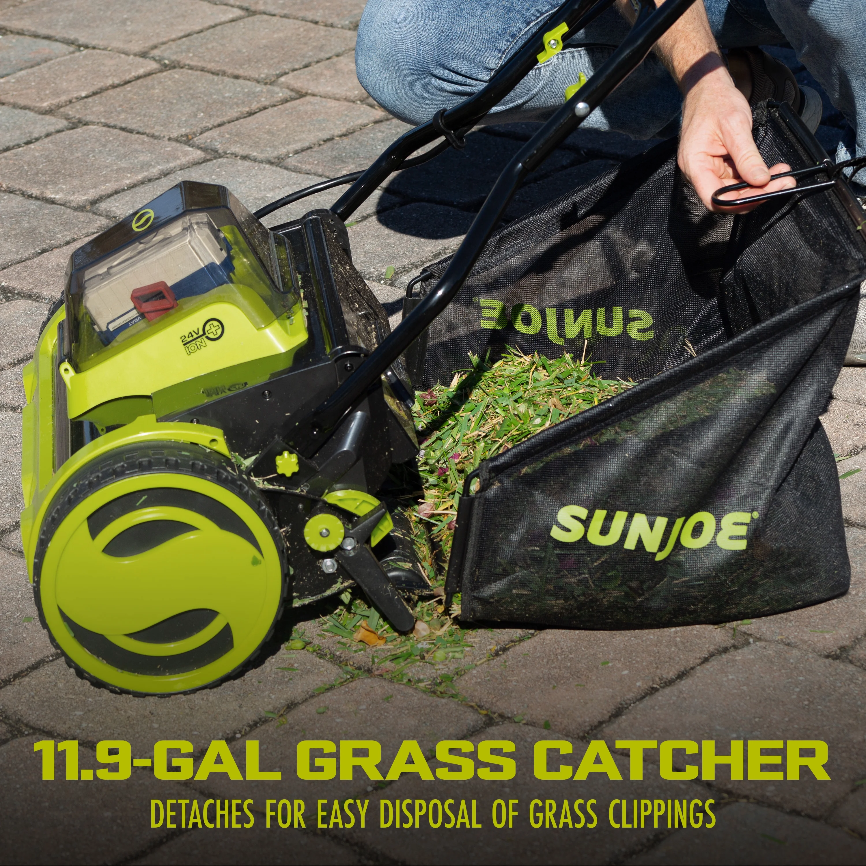 - Includes an 11.9 gallon grass collection bag to prevent littering your lawn with clippings, making disposal quick and easy.