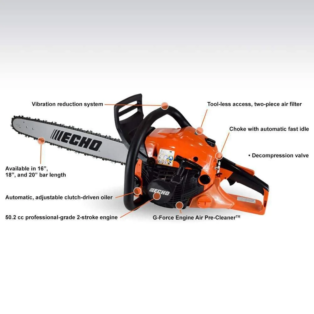 • ECHO 20 In. 50.2 Cc 2 - Stroke Gas Rear Handle Chainsaw