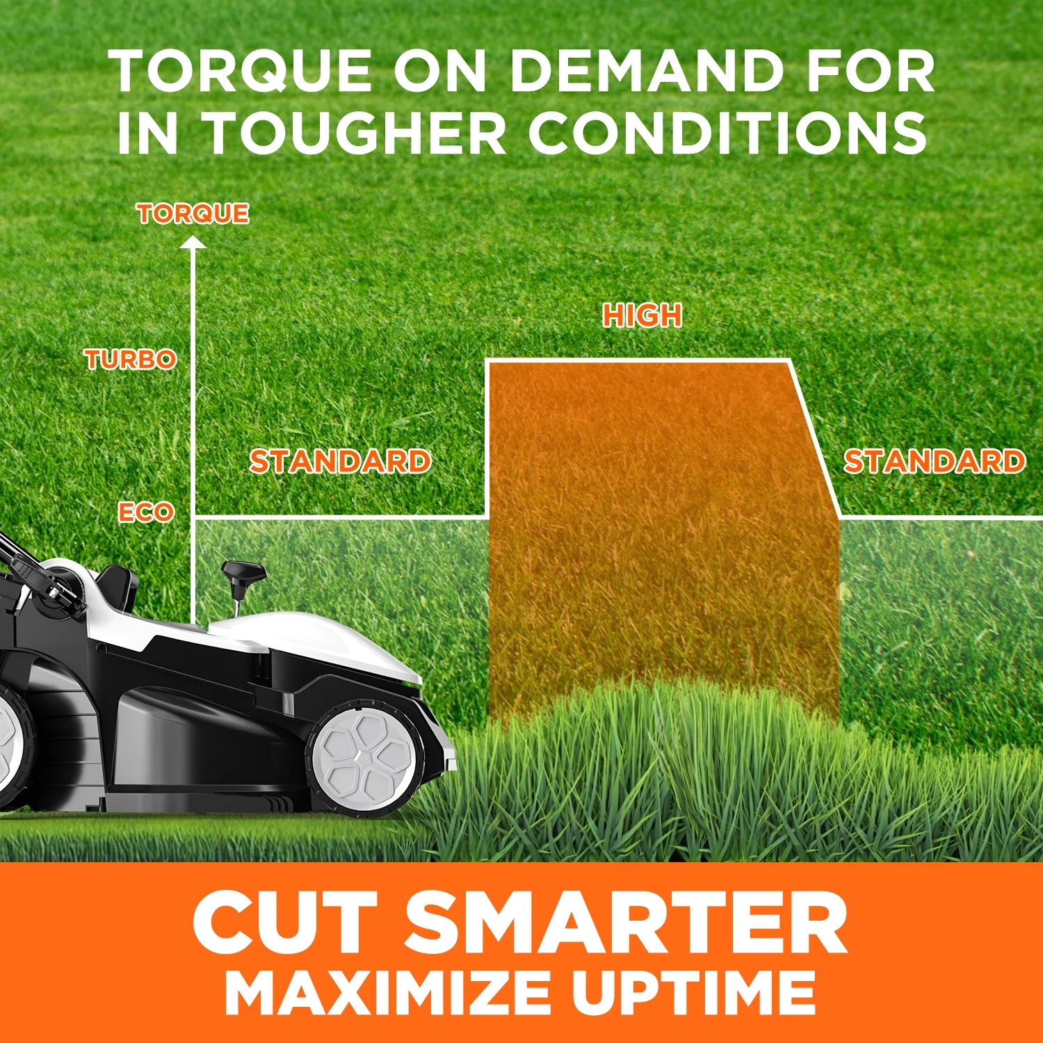 13" MOWING WIDTH: The 13" cutting width is ideal for everyday upkeep of your lawn. The upgraded brushless motor provides more powerful performance, quieter operation, and increases its service life.