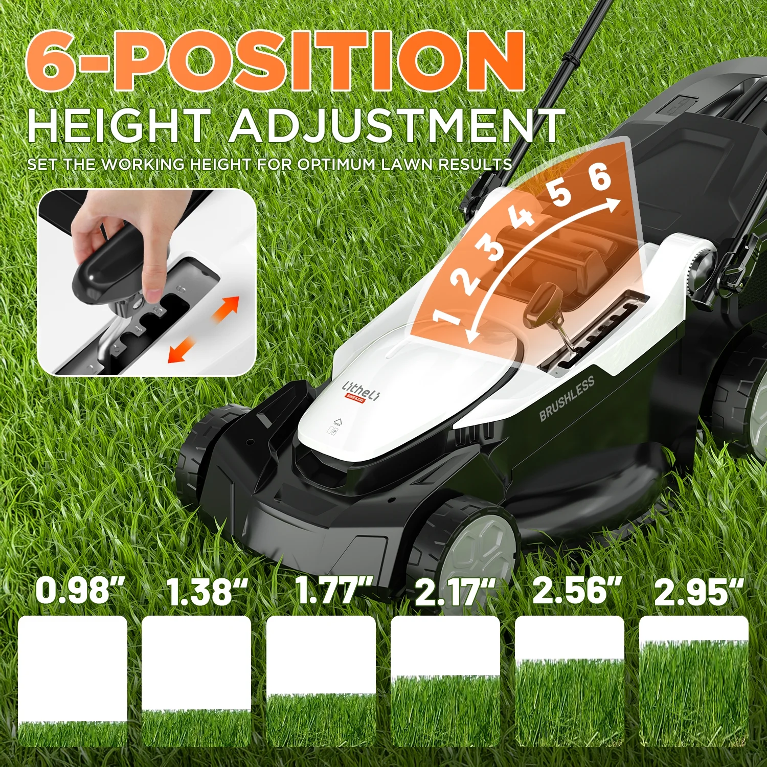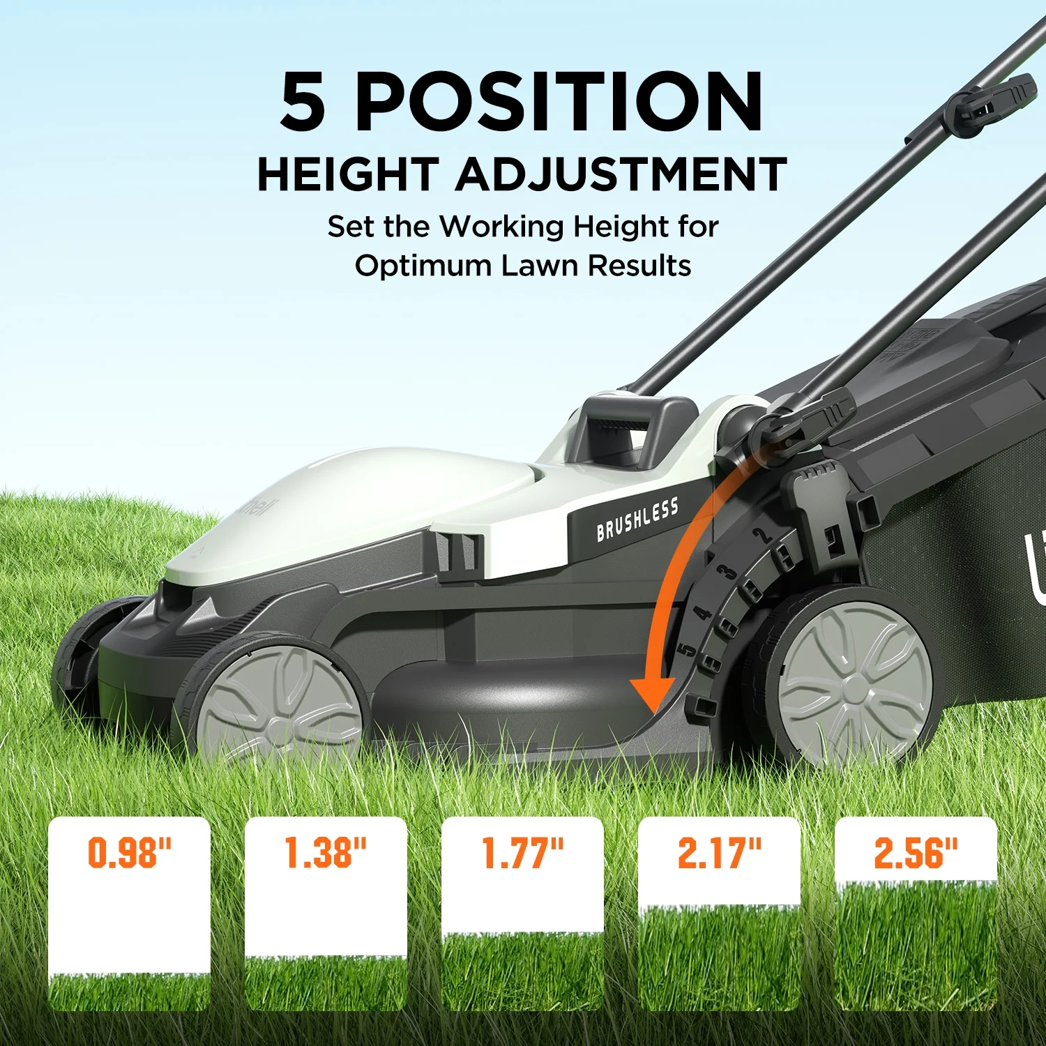 - Customize the cutting height to your preference with the 5-position height adjustment, ensuring a healthy and well-maintained lawn throughout the seasons.