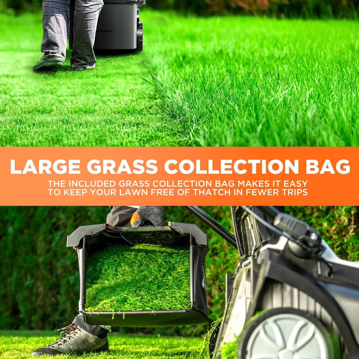 - The 30L grass bag makes it easier to dispose of clippings, keeping your lawn tidy and clean.