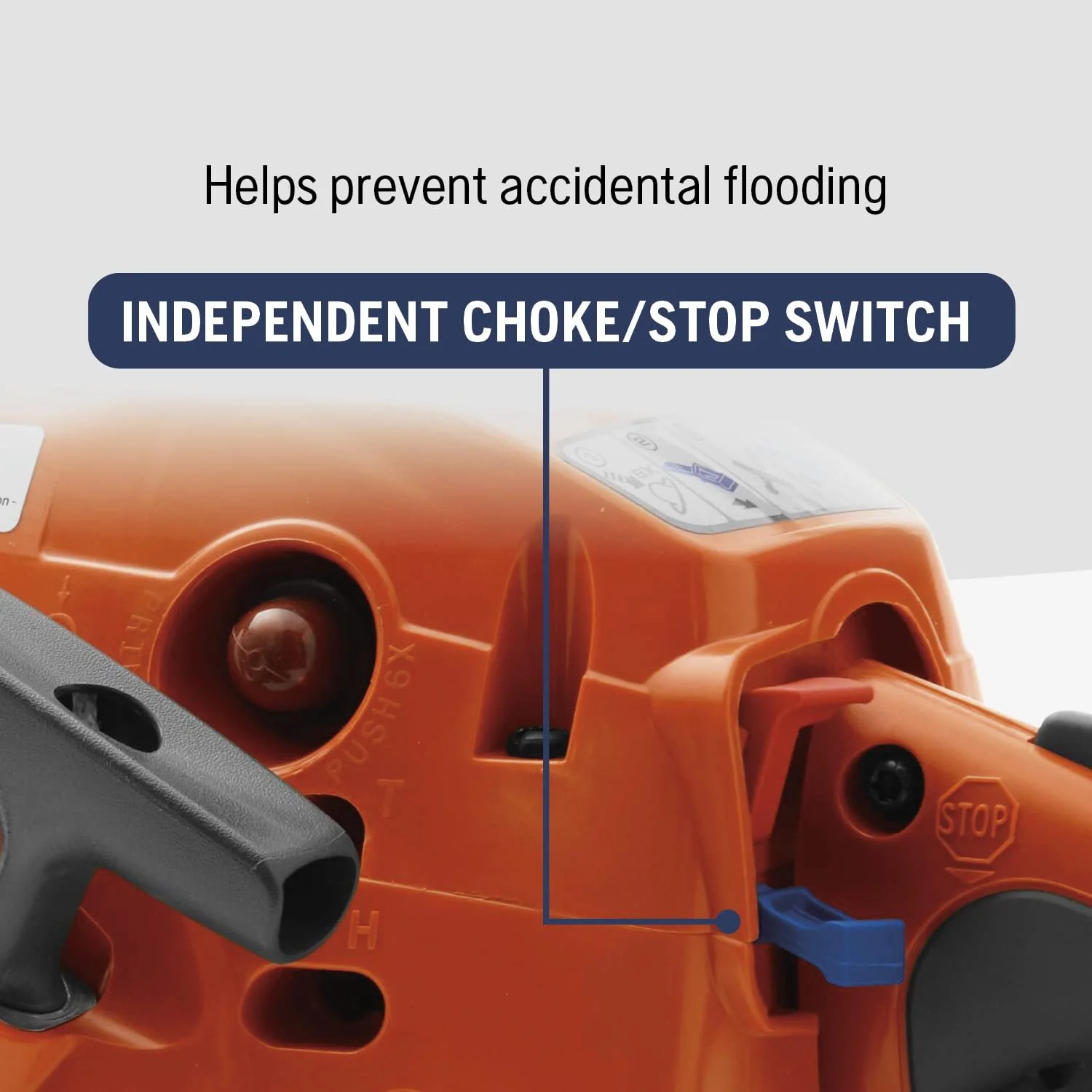 - SEPARATE CHOKE/STOP SWITCH CONTROLS: Stop switch automatically resets when the choke is pulled out to help prevent accidental flooding