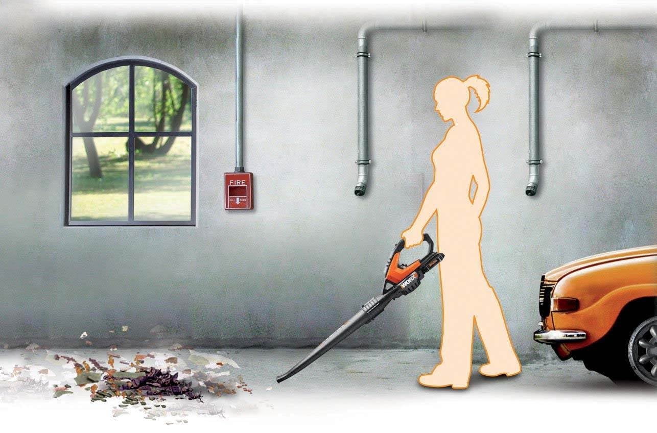 - SWEEPS DEBRIS - Without the attachments, the Worx Air is the best power broom you��ve ever had. Sweep the garage without backing the cars out