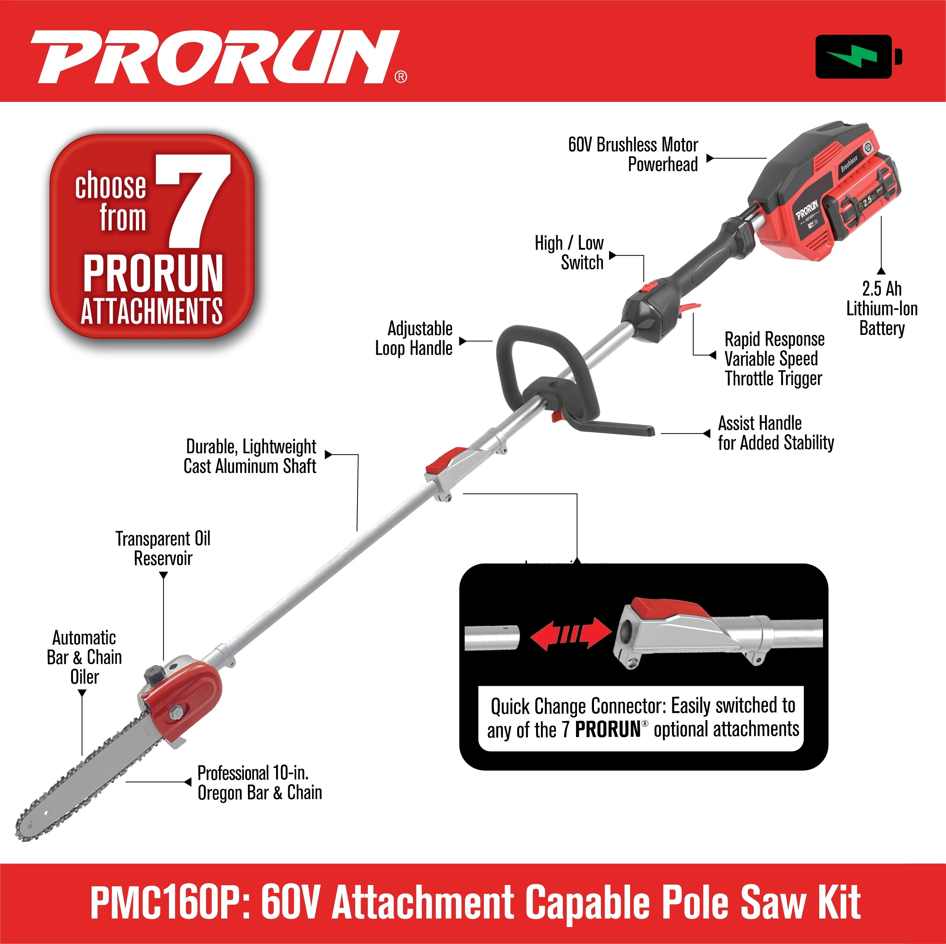 - Features a professional-grade Oregon 10-inch bar and chain that provides up to 14-foot cutting reach