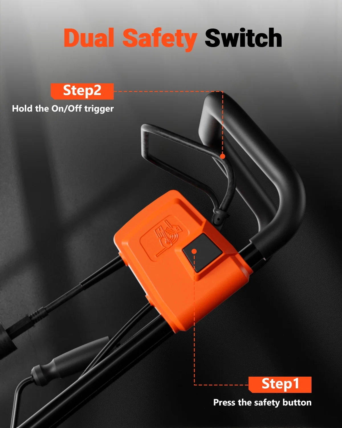 - POWERFUL & SAFE - This corded snow blower is equipped with a powerful 15-amp brushless motor, with 23 inches cleaning width and 13 inches cleaning depth. Additionally, key components of the electric snow thrower are waterproofed and snow-proofed. Also, our electric snow blower features a safety start button to prevent accidental activation, ensuring efficient and safe snow removal even in harsh weather conditions.