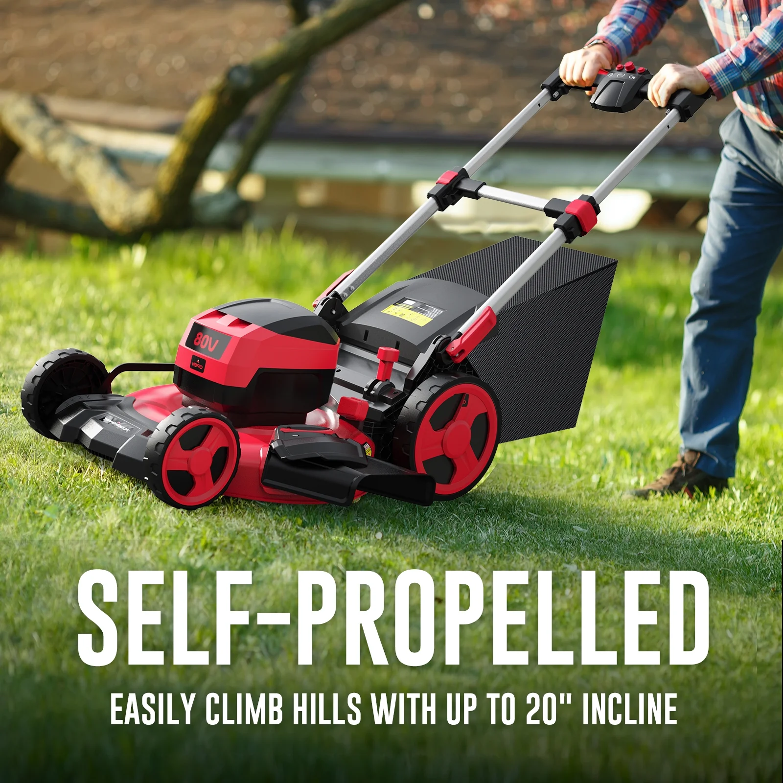Conquer Slopes Effortlessly:Self-propelled rear wheels tackle steep 20�� hills �C ideal for hilly backyards or uneven terrain.