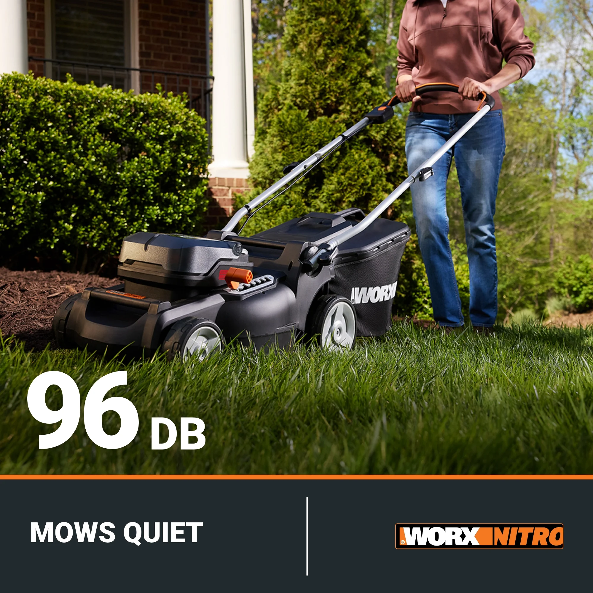 - STARTS QUICK, RUNS QUIET: No need to pull a starter cord over and over��this battery powered lawn mower features a quick-start push button that gets the motor going in seconds. And unlike gas mowers, it runs extremely quiet at a low 96 decibels