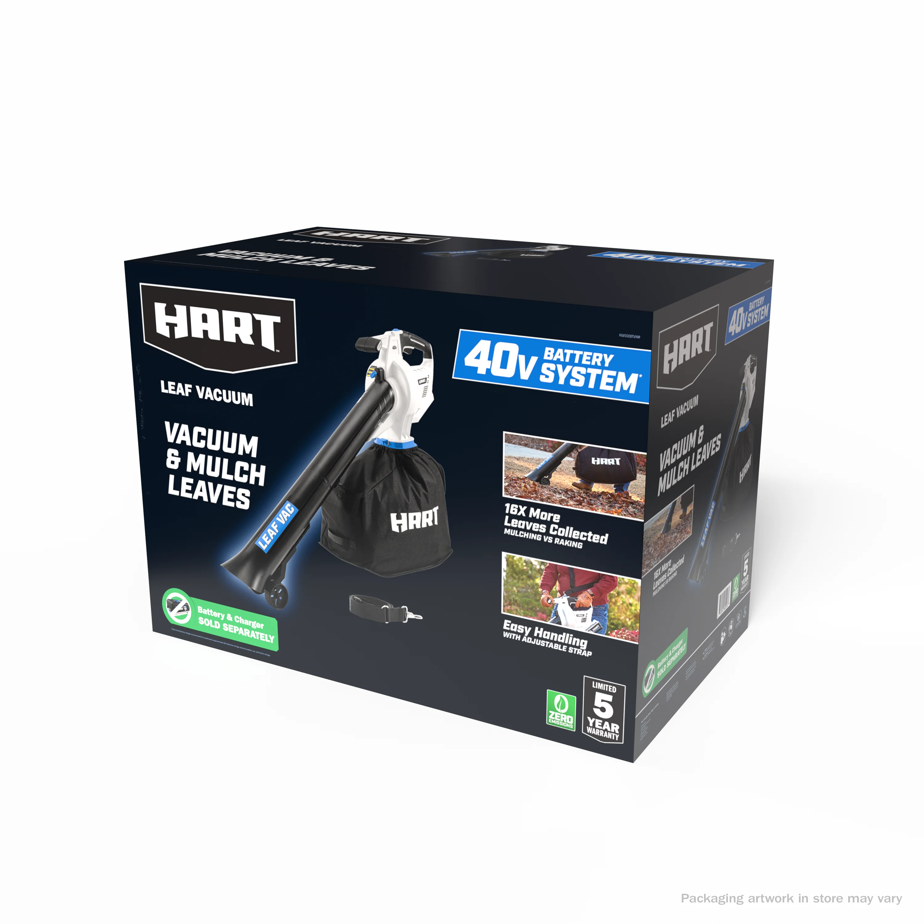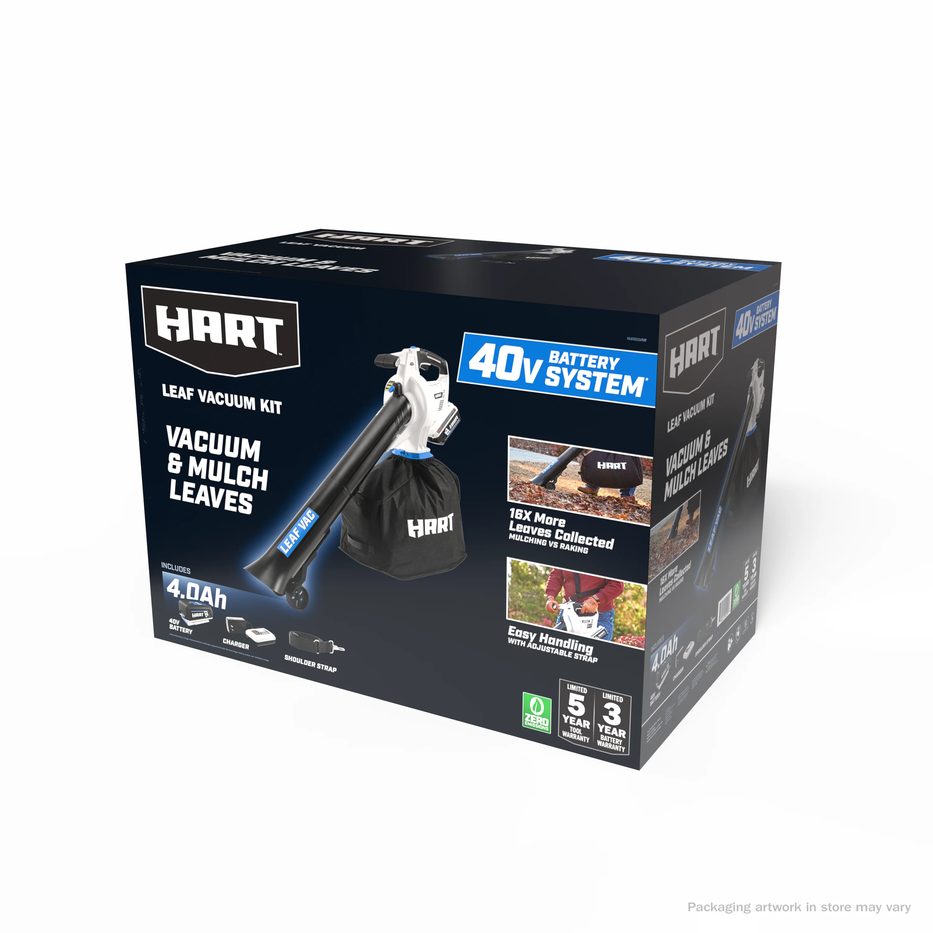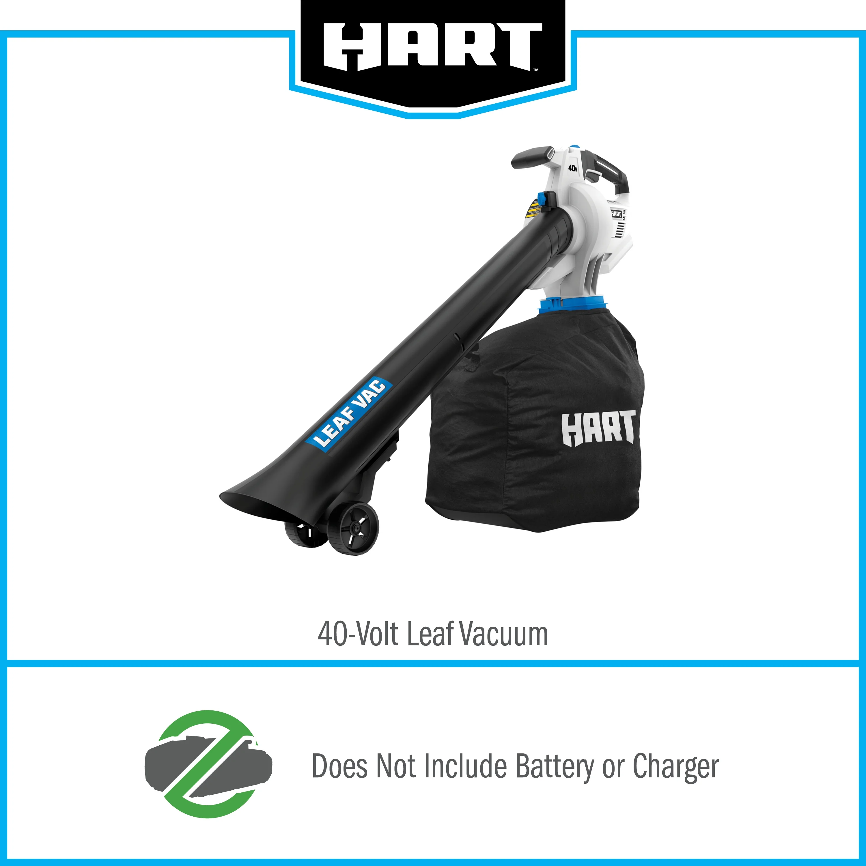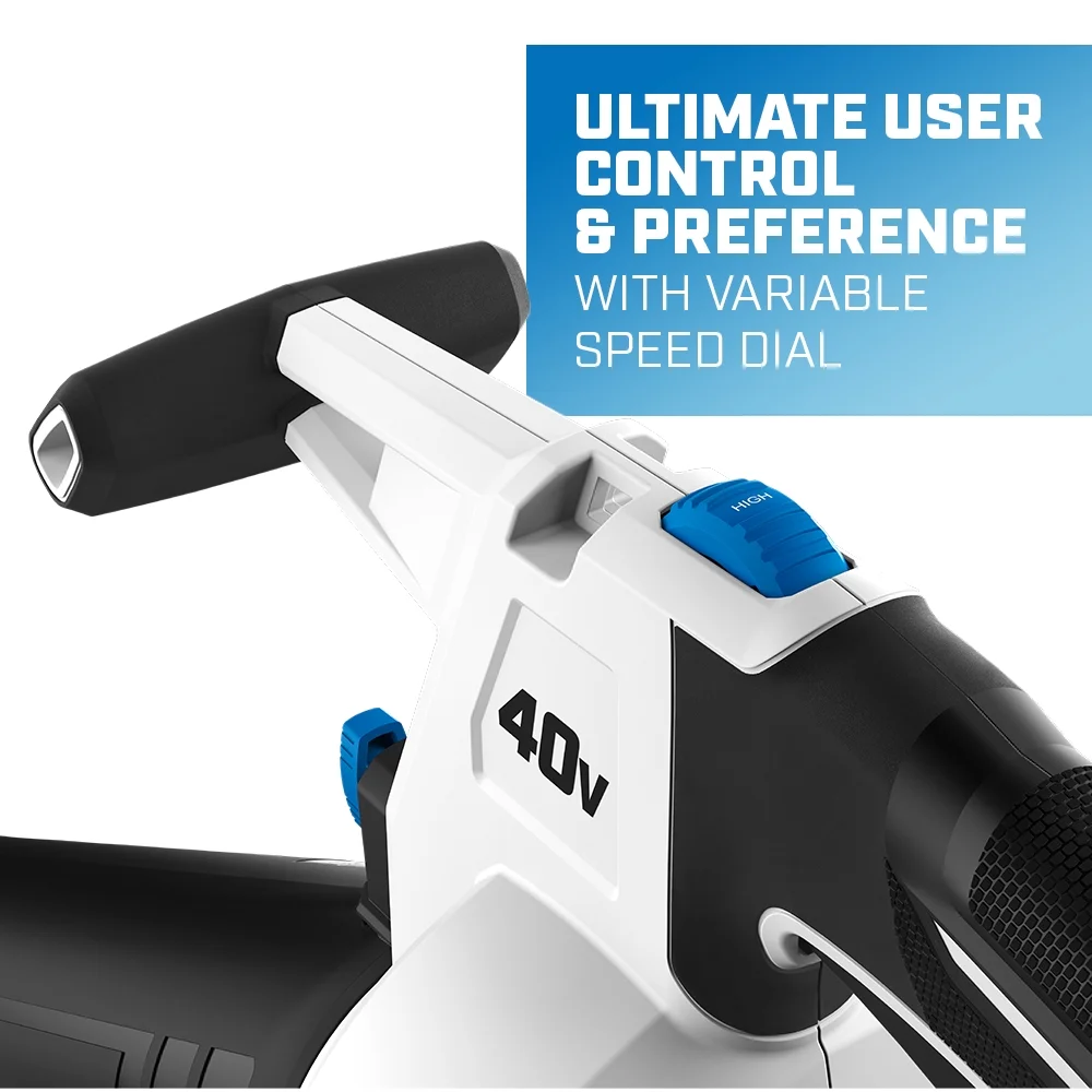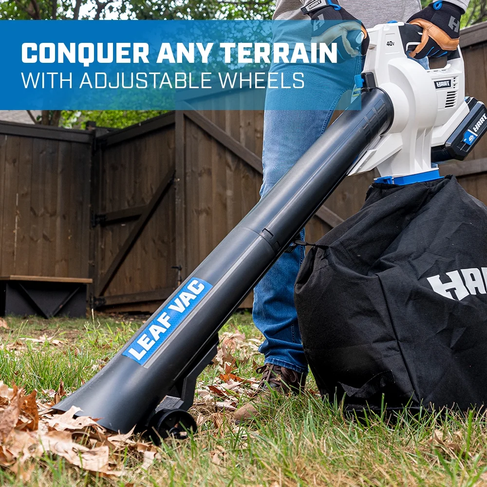 - Includes: Leaf Vacuum, Vacuum Tubes, Leaf Bag, Wheels, 4.0Ah 40V Lithium-Ion Battery, Charger, and Operator's Manuals