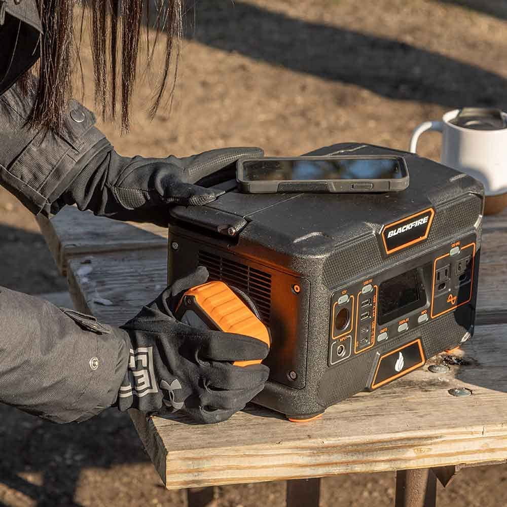 - POWER STATION RECHARGING: AC outlet (adapter included), DC carport (adapter included), or Solar Panels (sold separately; 80W Max). 8mm Port