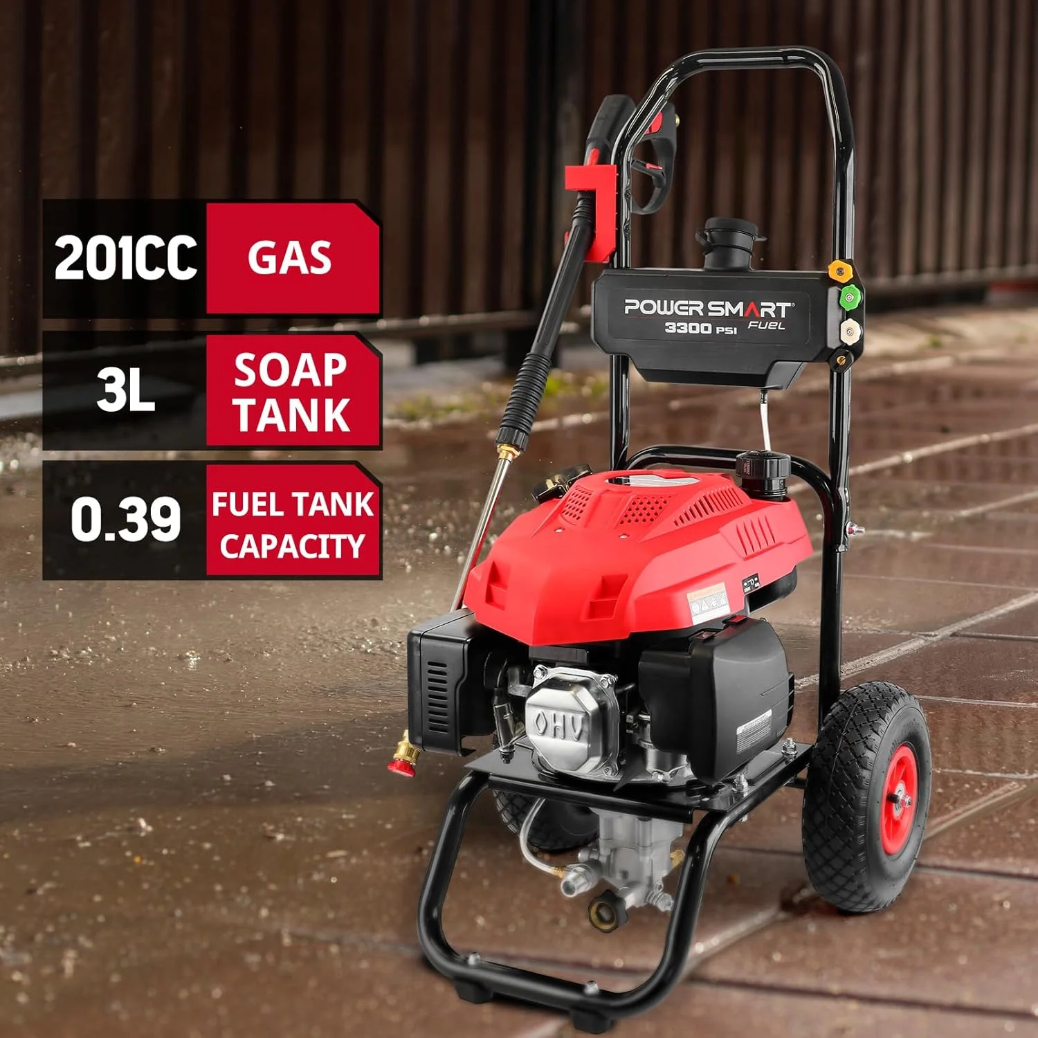 Powerful Cleaning: The PowerSmart Gas Pressure Washer delivers 3300 PSI and 2.5 GPM, making it perfect for deep cleaning decks, patios, sidewalks, siding, fences, garages, and more.