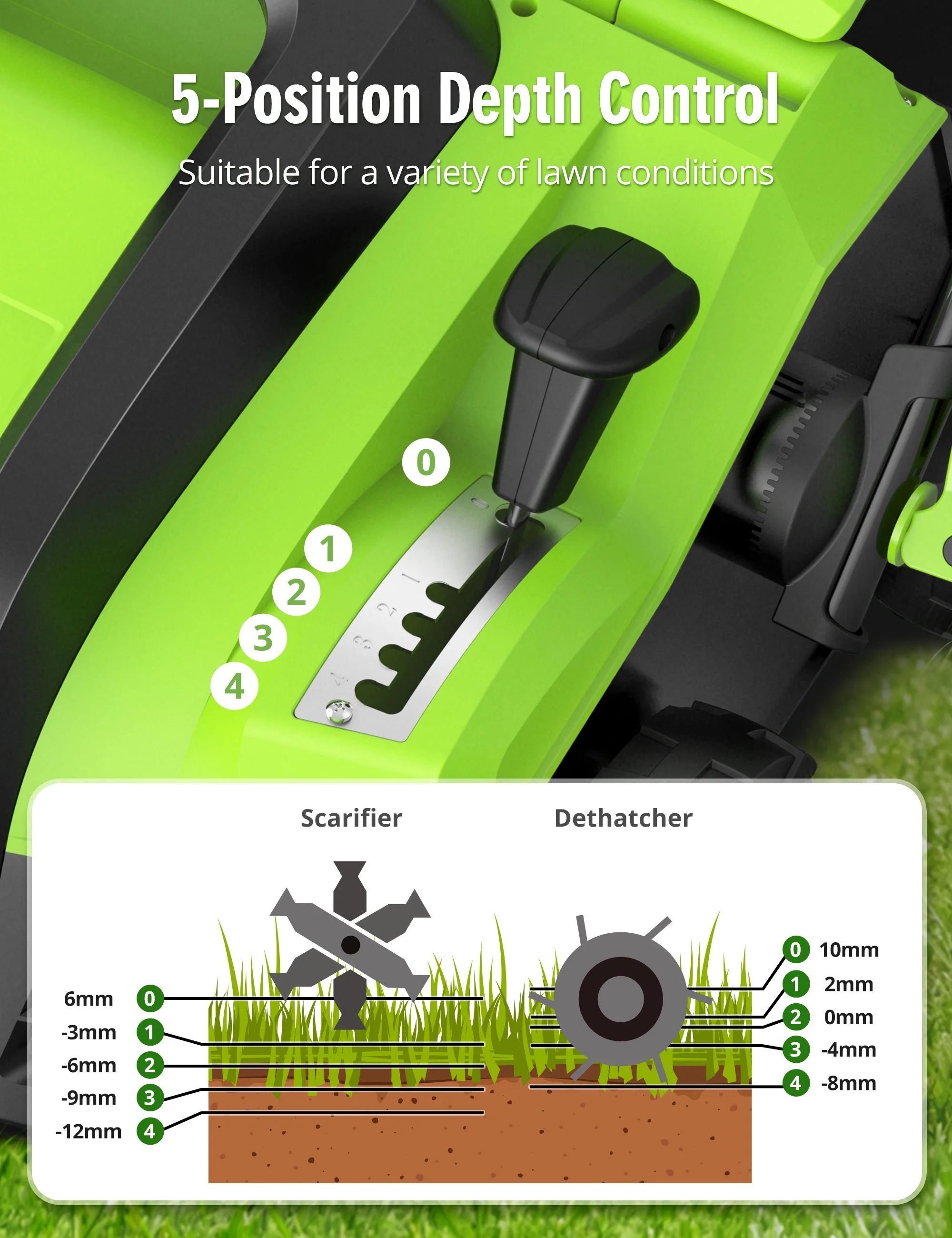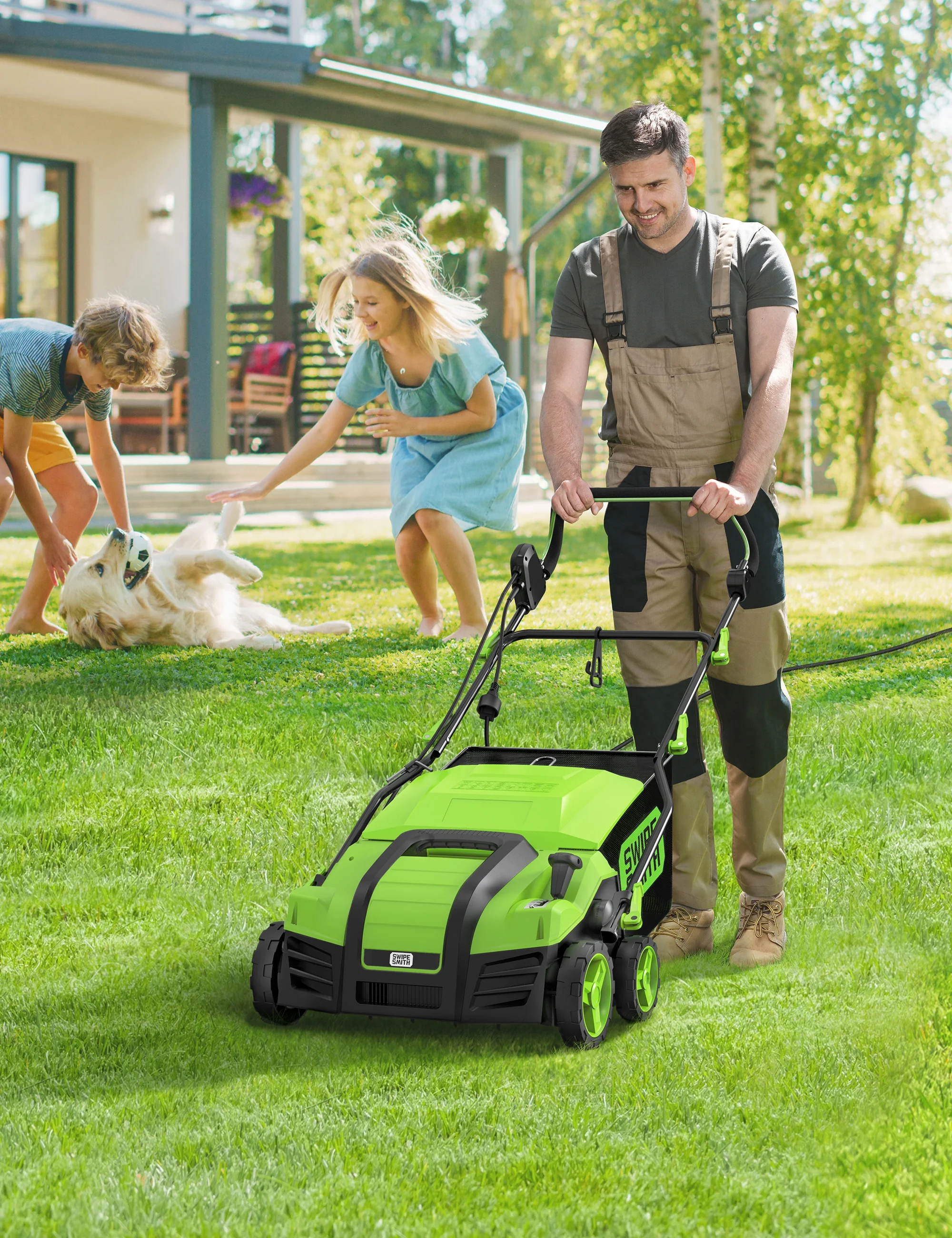Featuring a 15 AMP ultra-powerful motor, the SWIPESMITH 16-inch Electric Dethatcher Scarifier rakes an extra-wide 16" working path, getting you a faster dethatching job. Five adjustments of depth and three adjustments of angle can adapt to different lawn conditions, making lawn care easier.