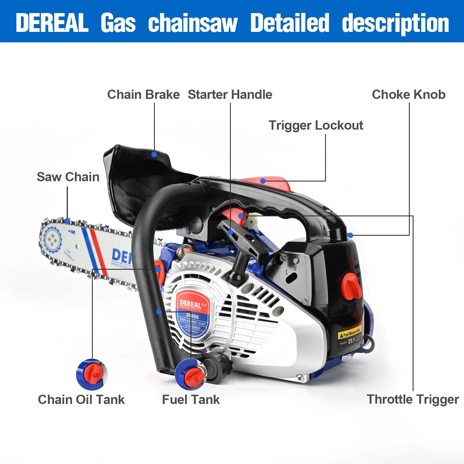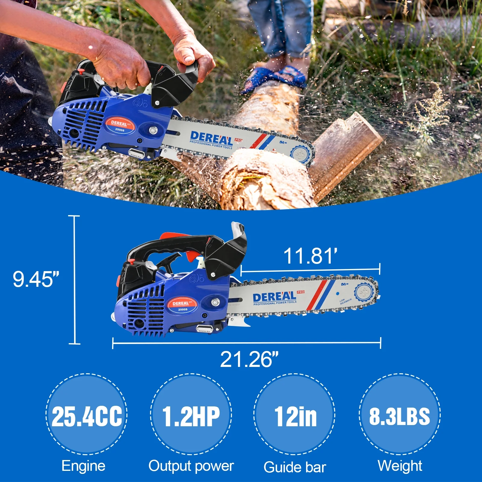 - High Quality -- Professional gas climbing chainsaw, equipped with high quality chain and high hardness bar, fast cutting, more durable and high wear resistance, not easy to drop chain, having a longer using life.Much faster and easier than using a 2 handed saw for small trees.Saws aren't TOYS, especially TOP handle or ONE hand saws!