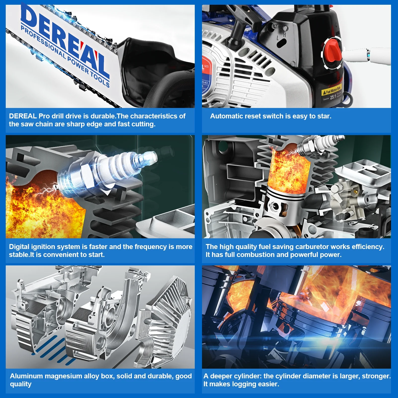 - Engine clean air intake system, Combination damper/switch structure, Multifunctional chain saw, can cut wood, saw bamboo, garden pruning, artistic root carving.