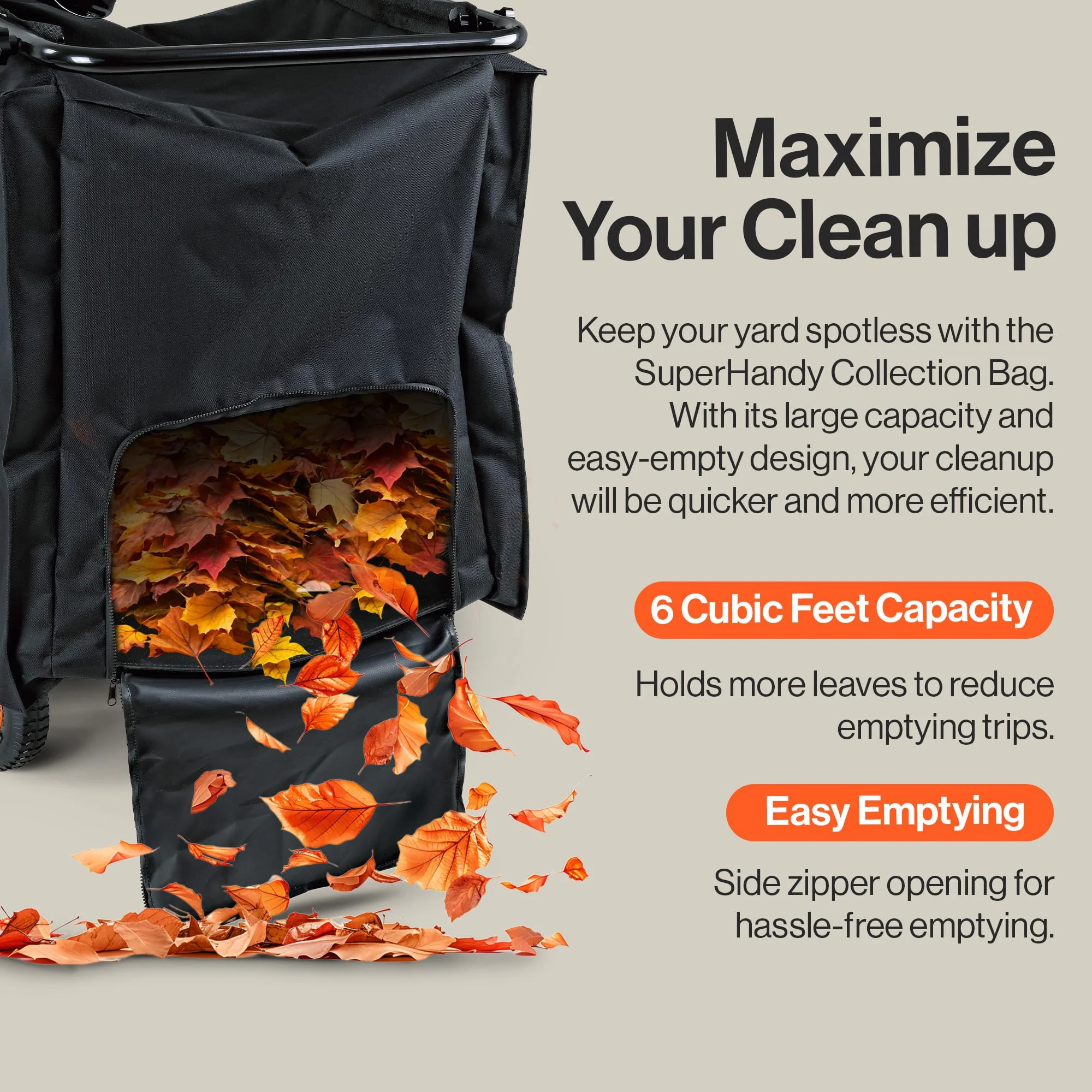 - Large Collection Bag: Features a spacious 6 bushel bag capacity, minimizing the need for frequent emptying during extended use. Side zipper openings allow for easy emptying.