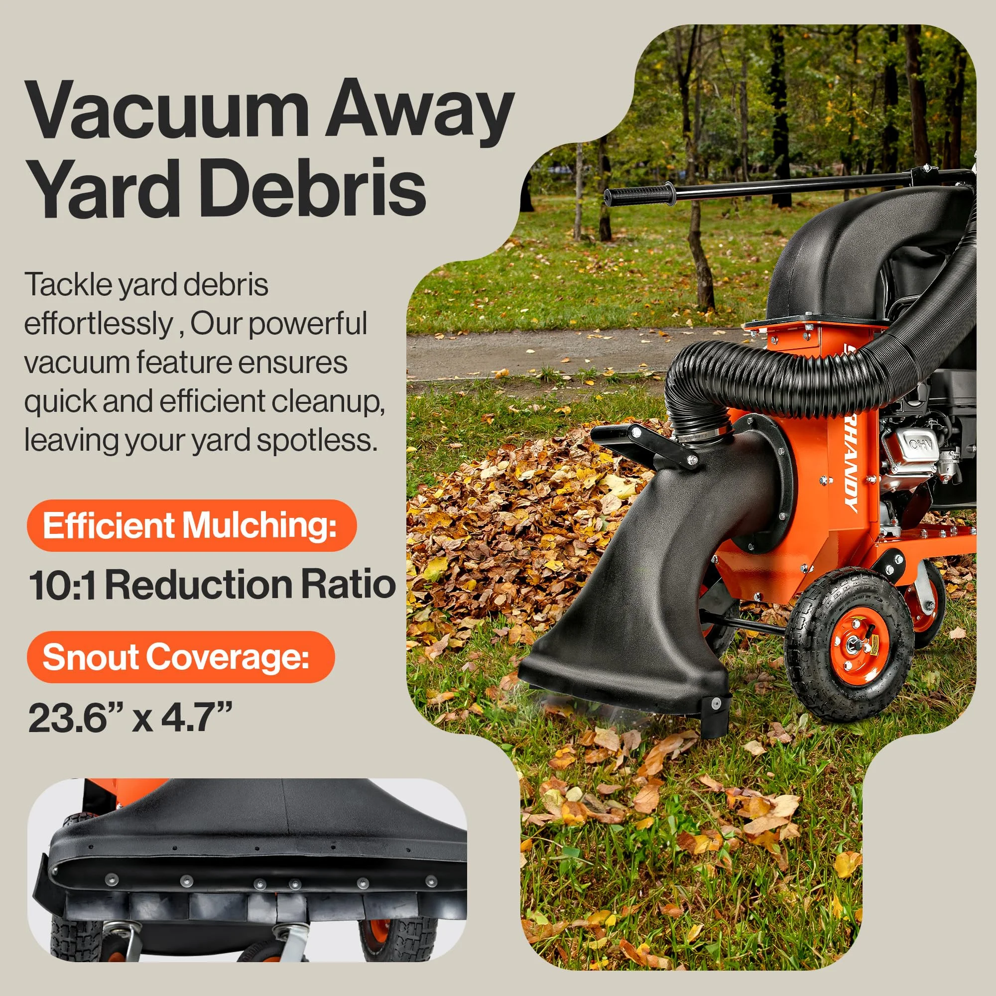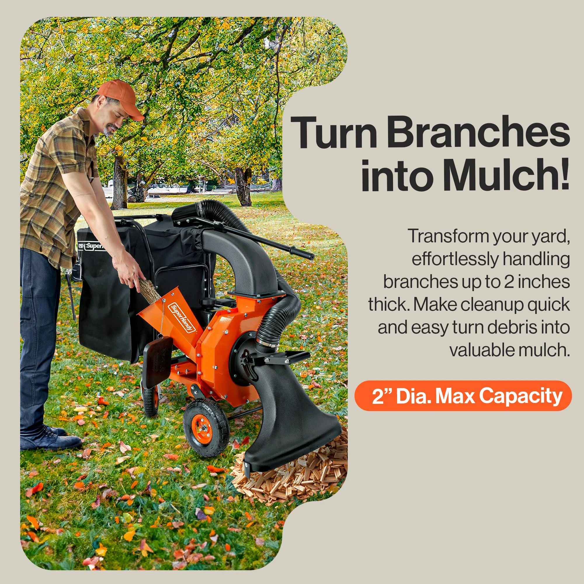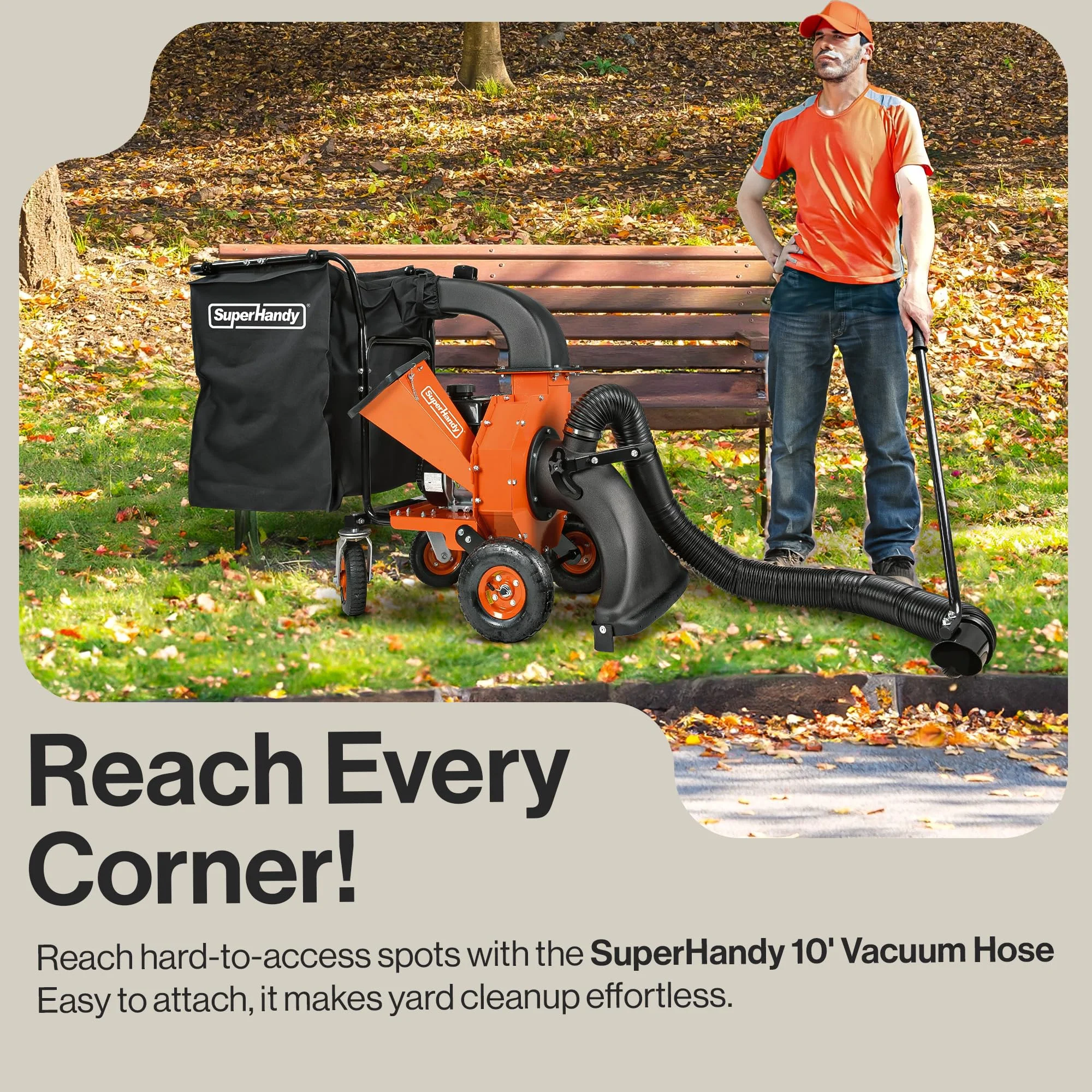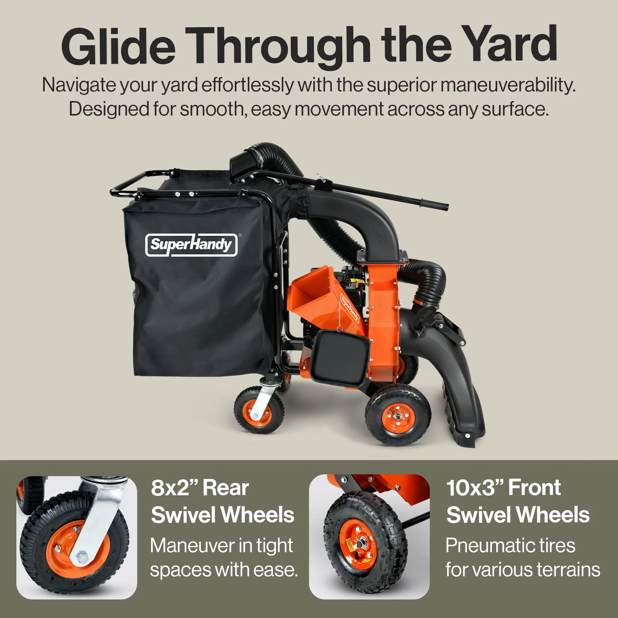 Superhandy Leaf Vacuum & Wood Chipper - 7 HP 209CC Gas Engine, 10:1 Mulch Ratio, 6 Bushel Bag Capacity, Castor Wheels, Dual Function: Walk - Behind Leaf Vacuum Mulcher & Wood Chipper