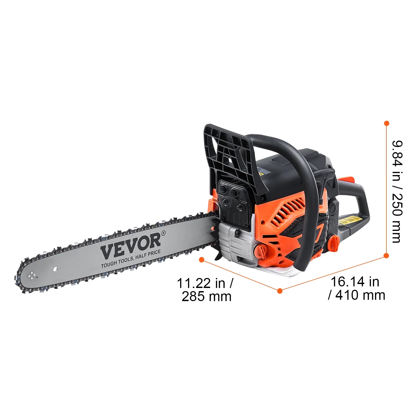 VEVOR Gas Chainsaw, 52CC 18" 2.55HP, Gasoline Powered Chain Saw, Handheld Cordless Petrol Chainsaws for Tree Wood Branch Cutting, Tree Trimming, Land Clearing, Farm Garden Ranch Forest Cutting Use