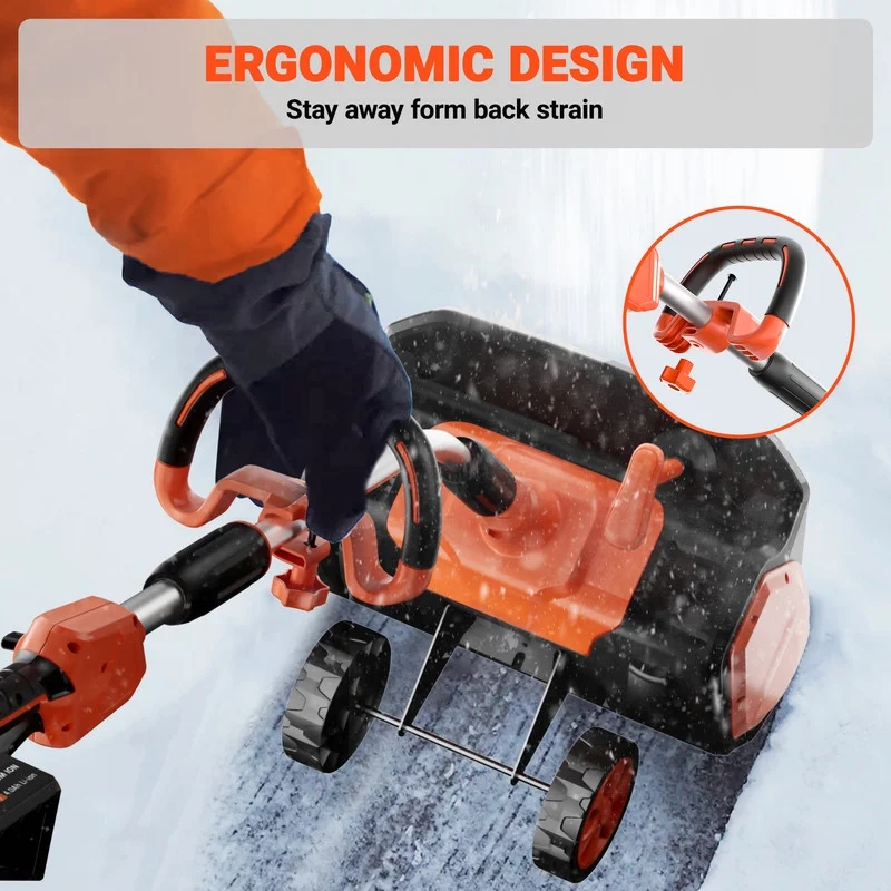 - ERGONOMIC FEATURES - Adjustable auxiliary handle makes your snow removal job easy, comfortable and efficient without breaking your back. The auxiliary handle can be set at different angles and heights for you to find the most suitable grip position. Crafted with a dual safety switch, the non-slip handle reduces the risks of accidental start-up and guarantee you a safe, reliable snow clearing performance.