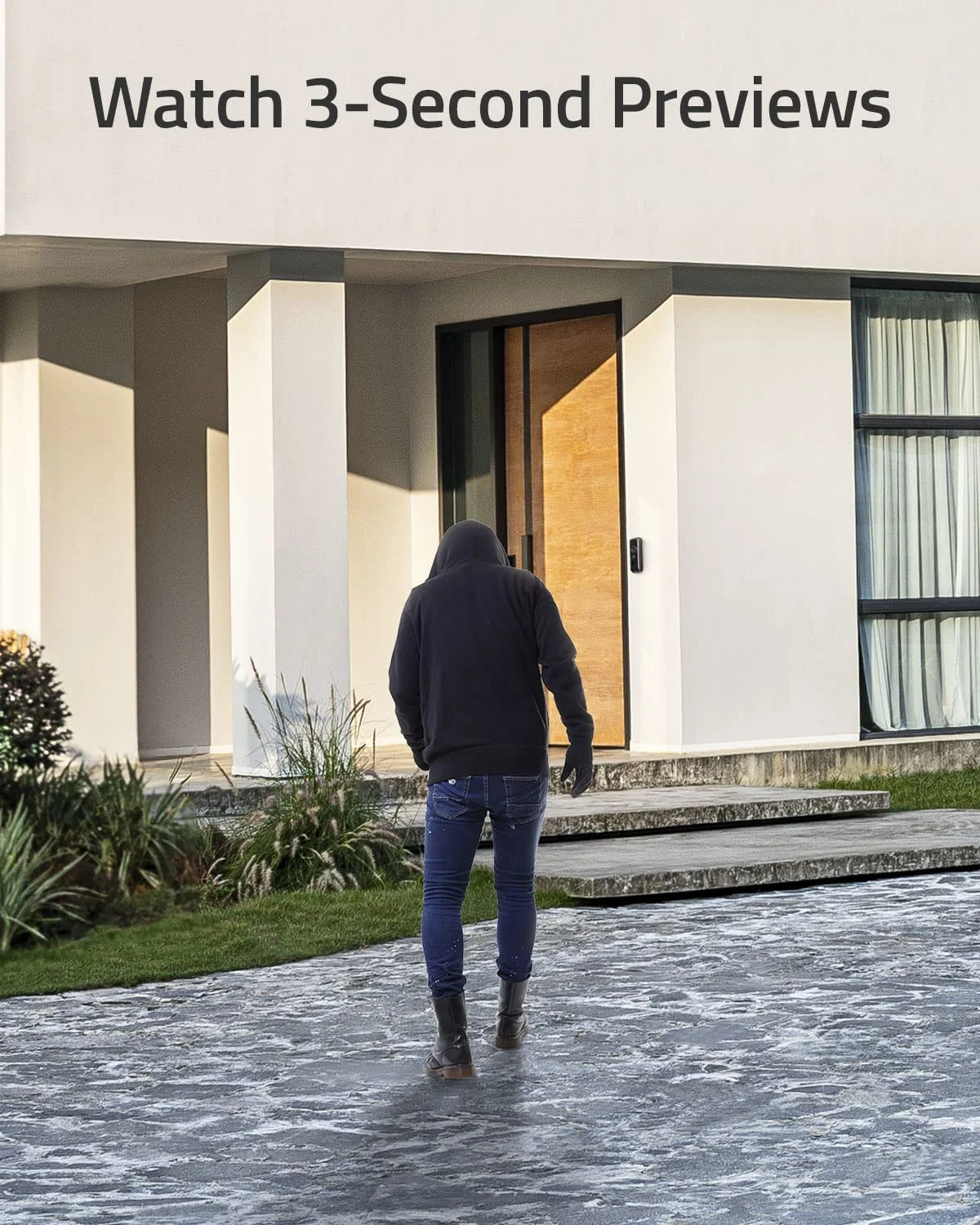 - With a low-angle camera, blindspots are eliminated and your doorstep is in full view.