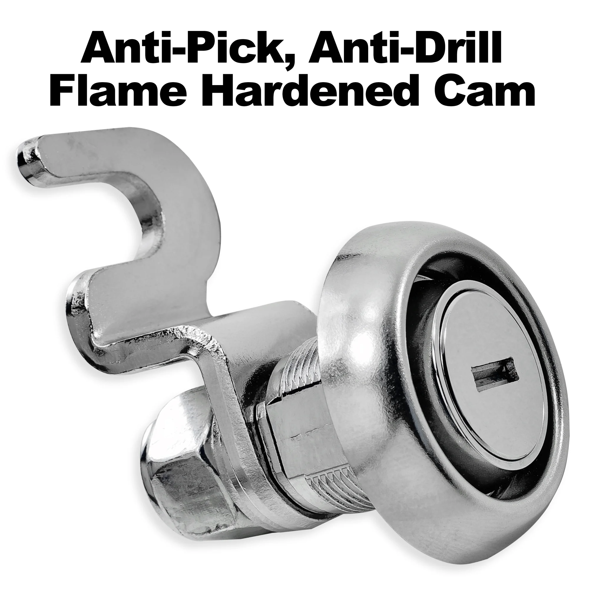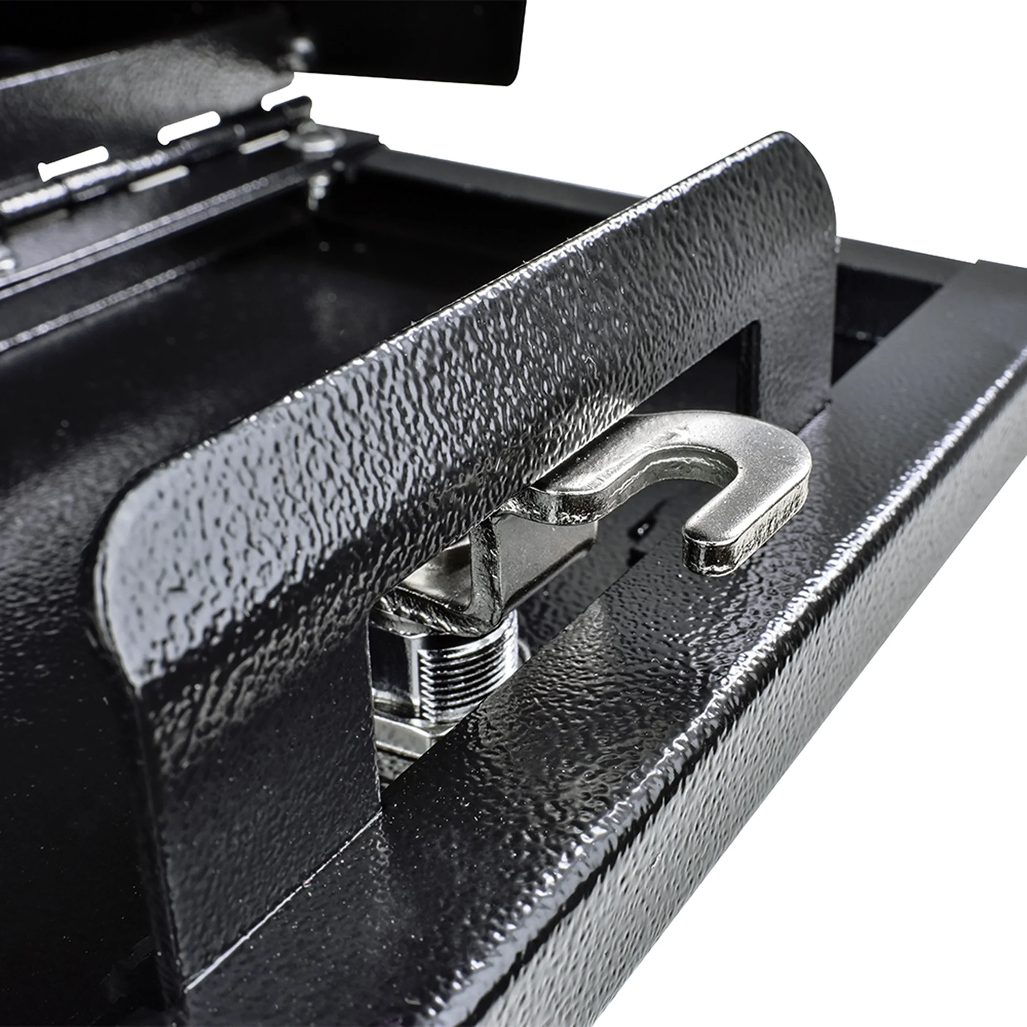 - Patented anti-pry latch locking systems featuring chrome-alloy tempered steel hook cams