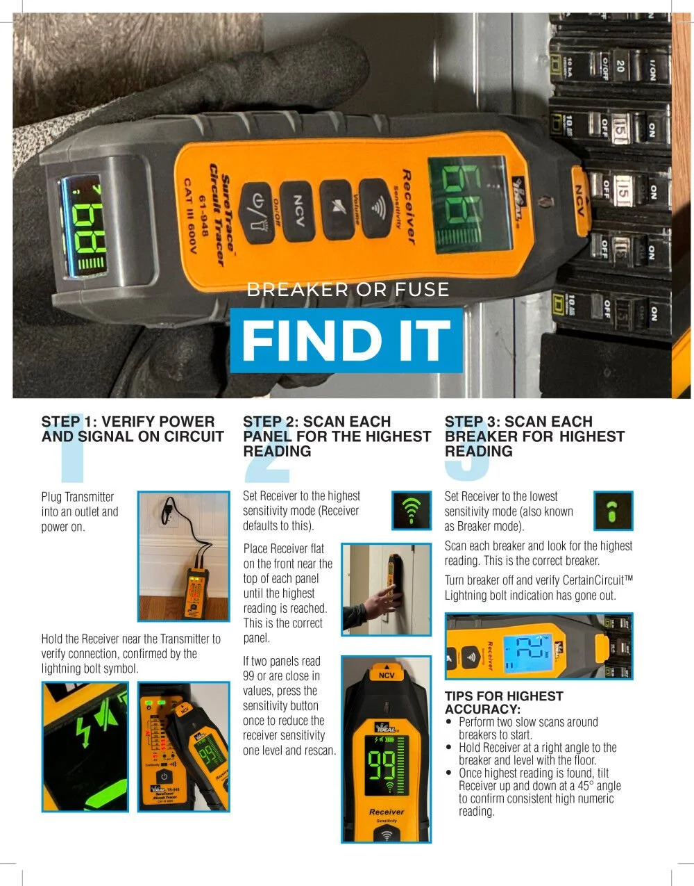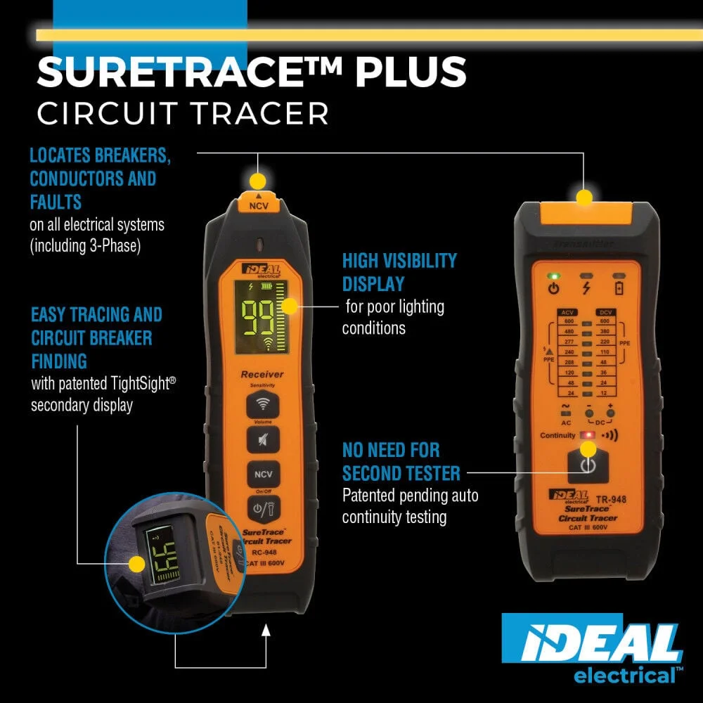 - RELIABLE TRACING: Detect breakers, conductors, fuses, dead shorts, and splice errors in all electrical systems up to 600V AC/DC, including 3-phase, with speed and accuracy using this ETL Certified CAT III circuit tracer