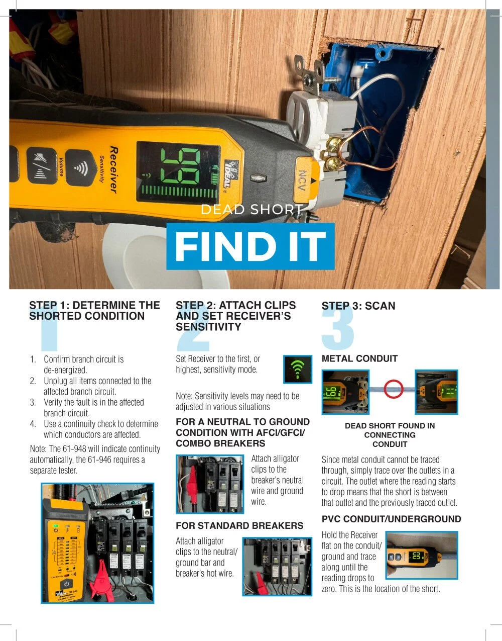 - LIGHTEN YOUR TOOLBELT: Identify shorted conductors, determine voltage levels, and detect AC voltage �� no second tester needed �� when using the new patent-pending transmitter features and receiver with a built-in NCVT