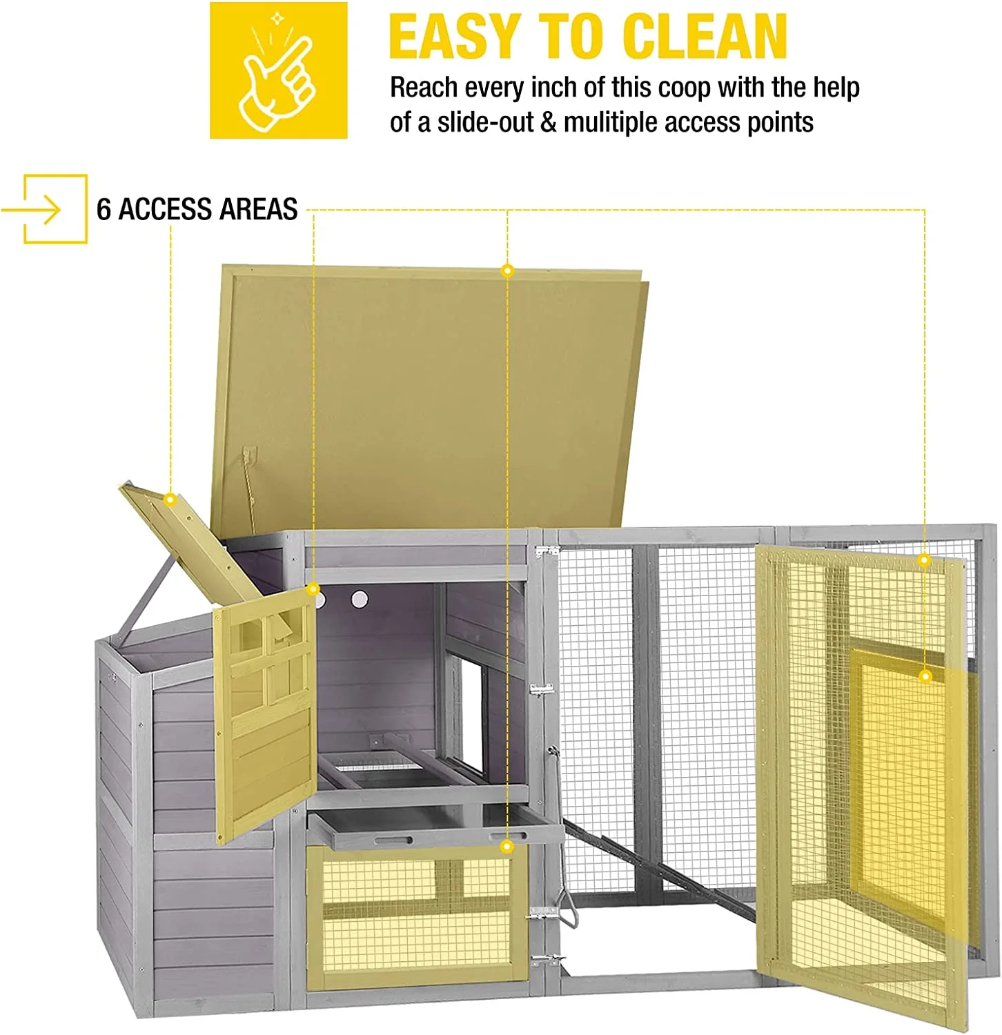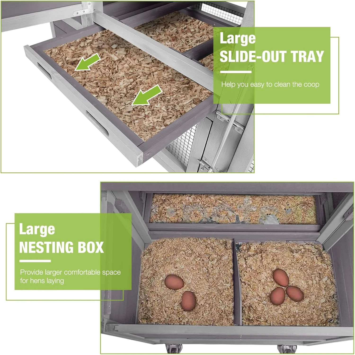 - The pull-out tray is for you to clean the coop easily to keep the neat environment