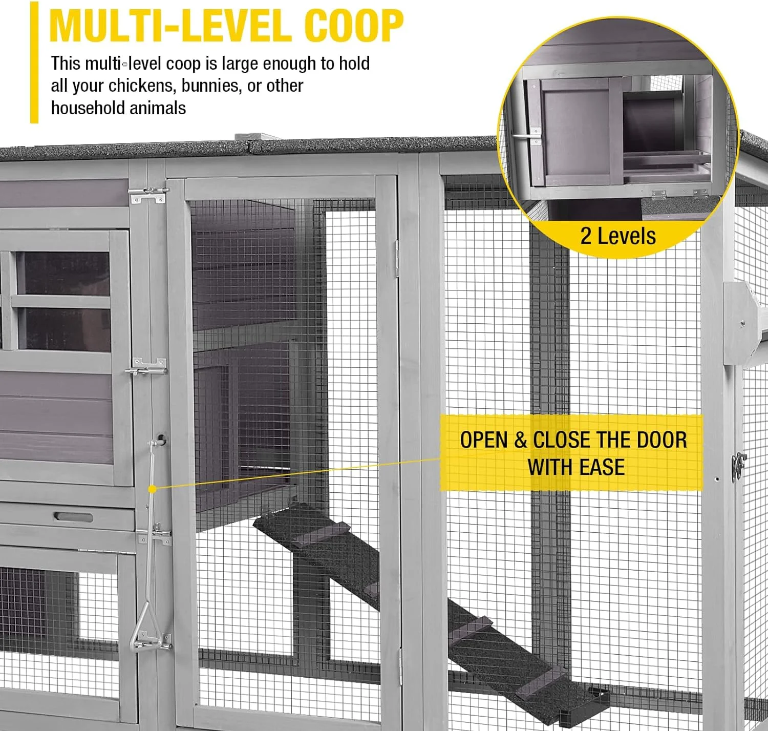 - Heavy-duty galvanized wire mesh and metal spring latch can great protect your poultry, the steel pole of sliding doors keeps roosters and ducks locked up safely at home