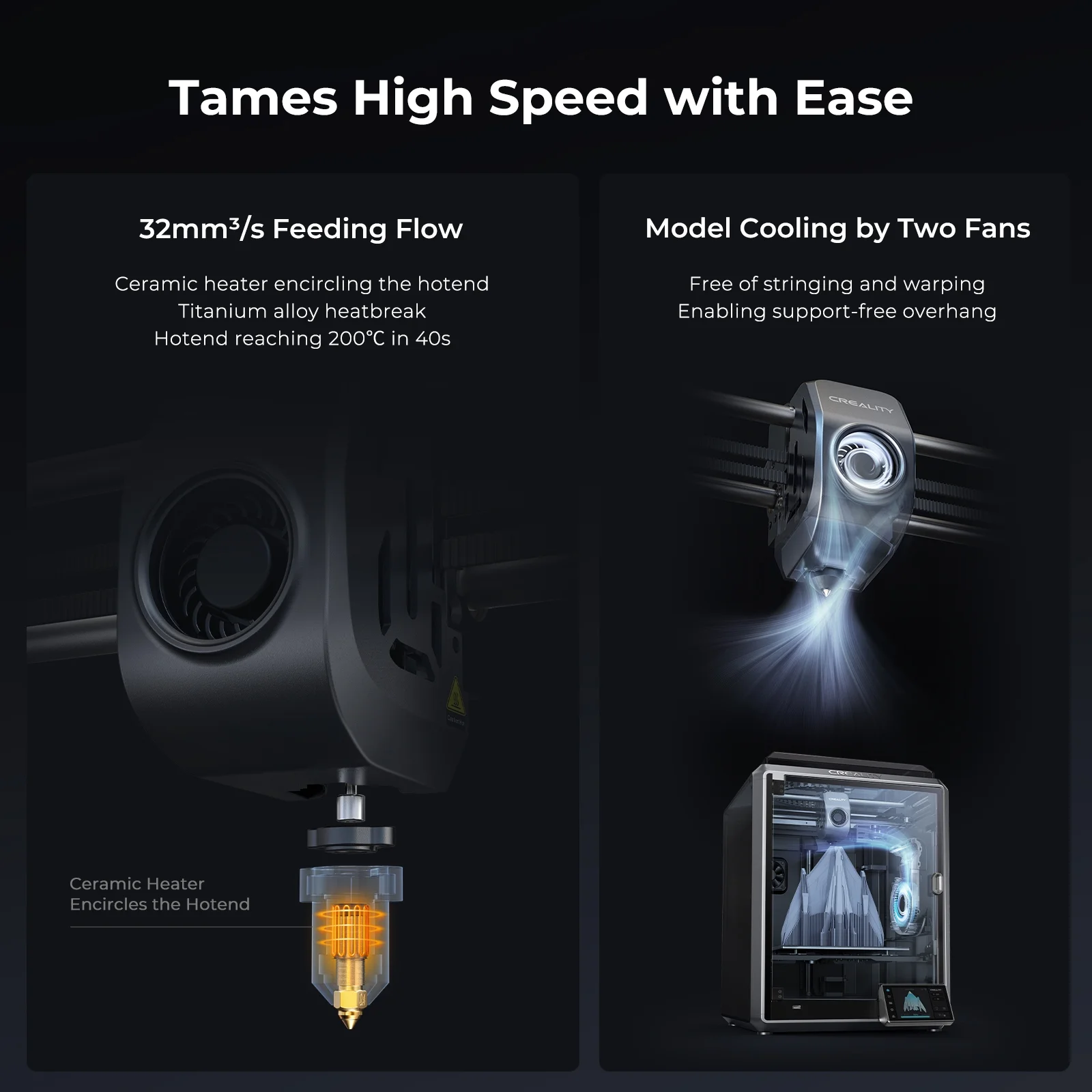 - No Nozzle ClogsWith our new ceramic heater, K1 Hotend works smoothly with flying colors in up to 300��C