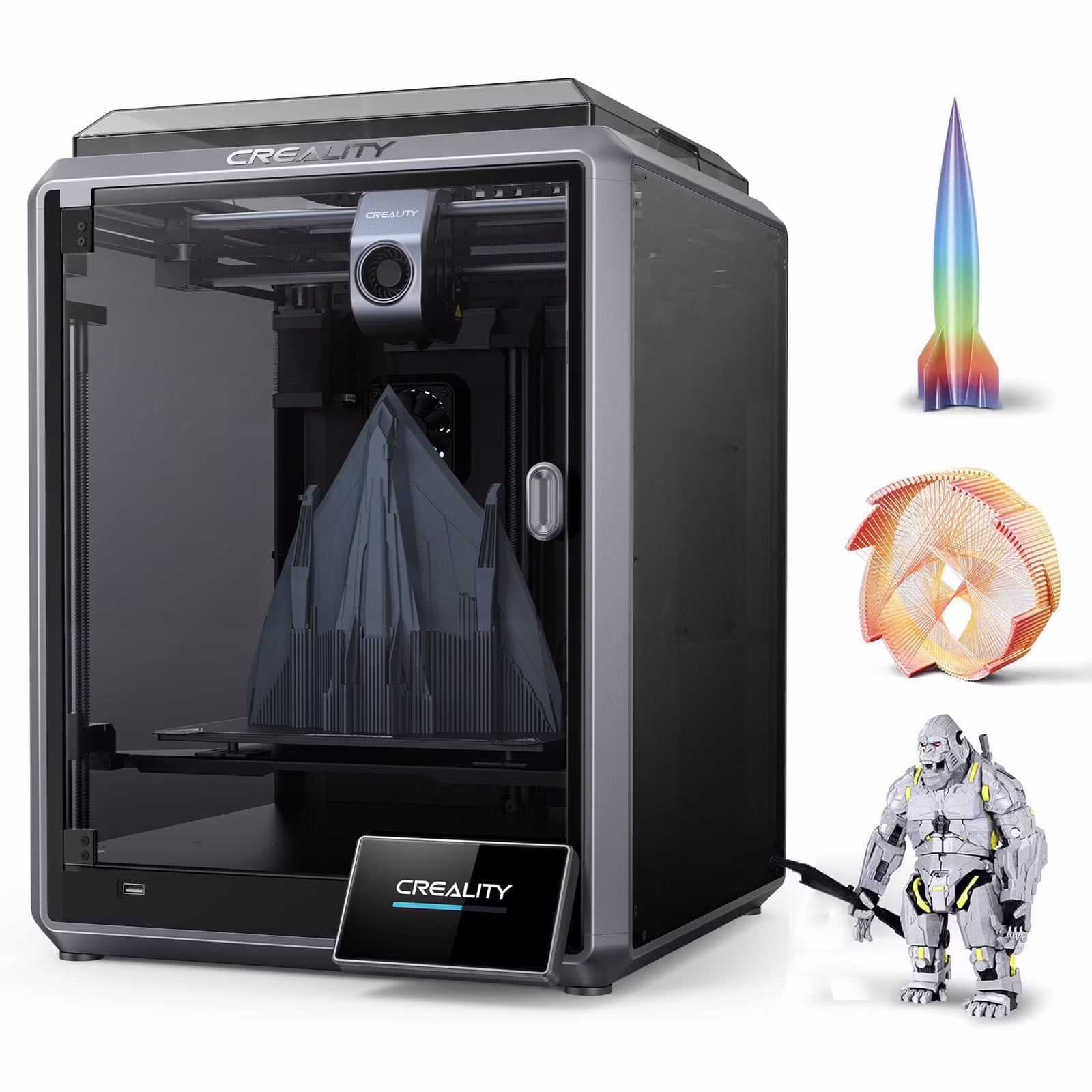 3. What materials is the Creality K1 compatible with?A: This printer can print with an extensive range of filaments like ABS, PLA, TPU, PET, PETG, PA (Nylon), ASA, PC (Polycarbonate), PLA-CF (Carbon Fiber Reinforced PLA), PA-CF (Carbon Fiber Reinforced PA), and PET-CF (Carbon Fiber Reinforced PET).