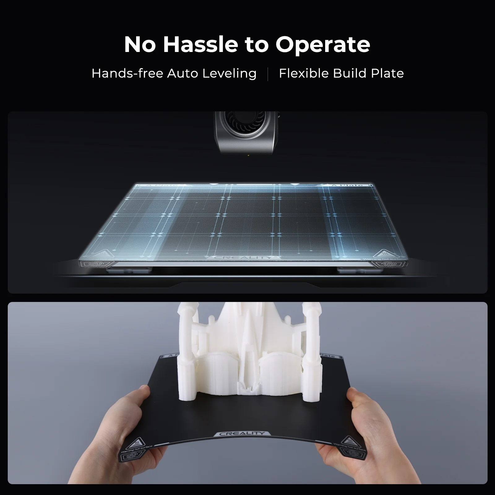 - Hands-Free Auto LevelingK1 will adjust the build plate to a perfect leveling surface before printing starts